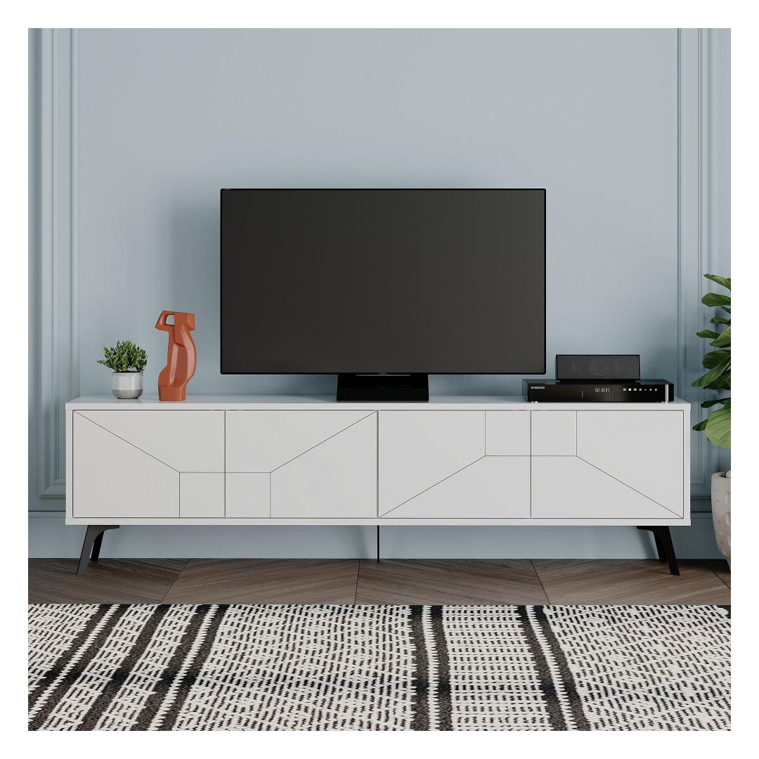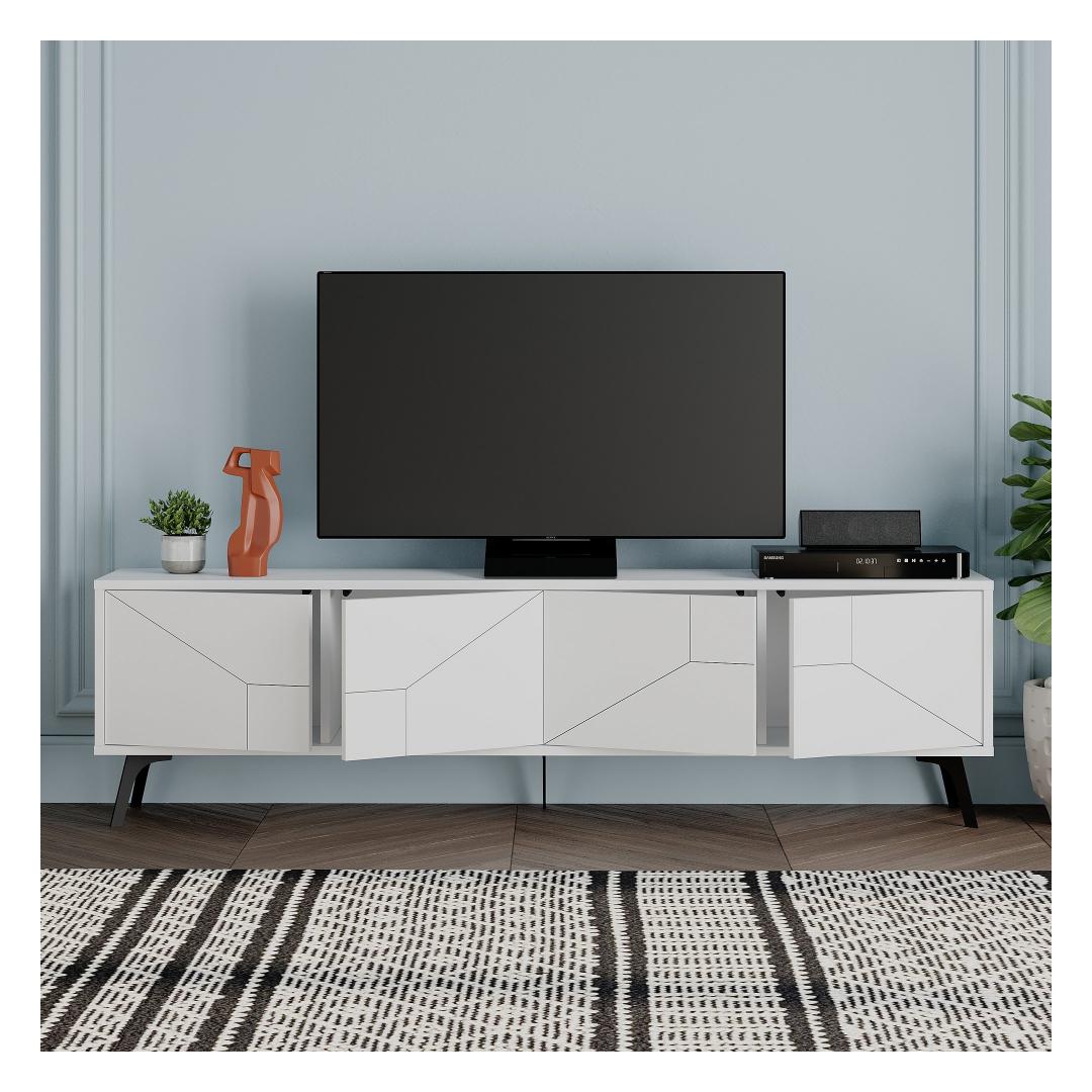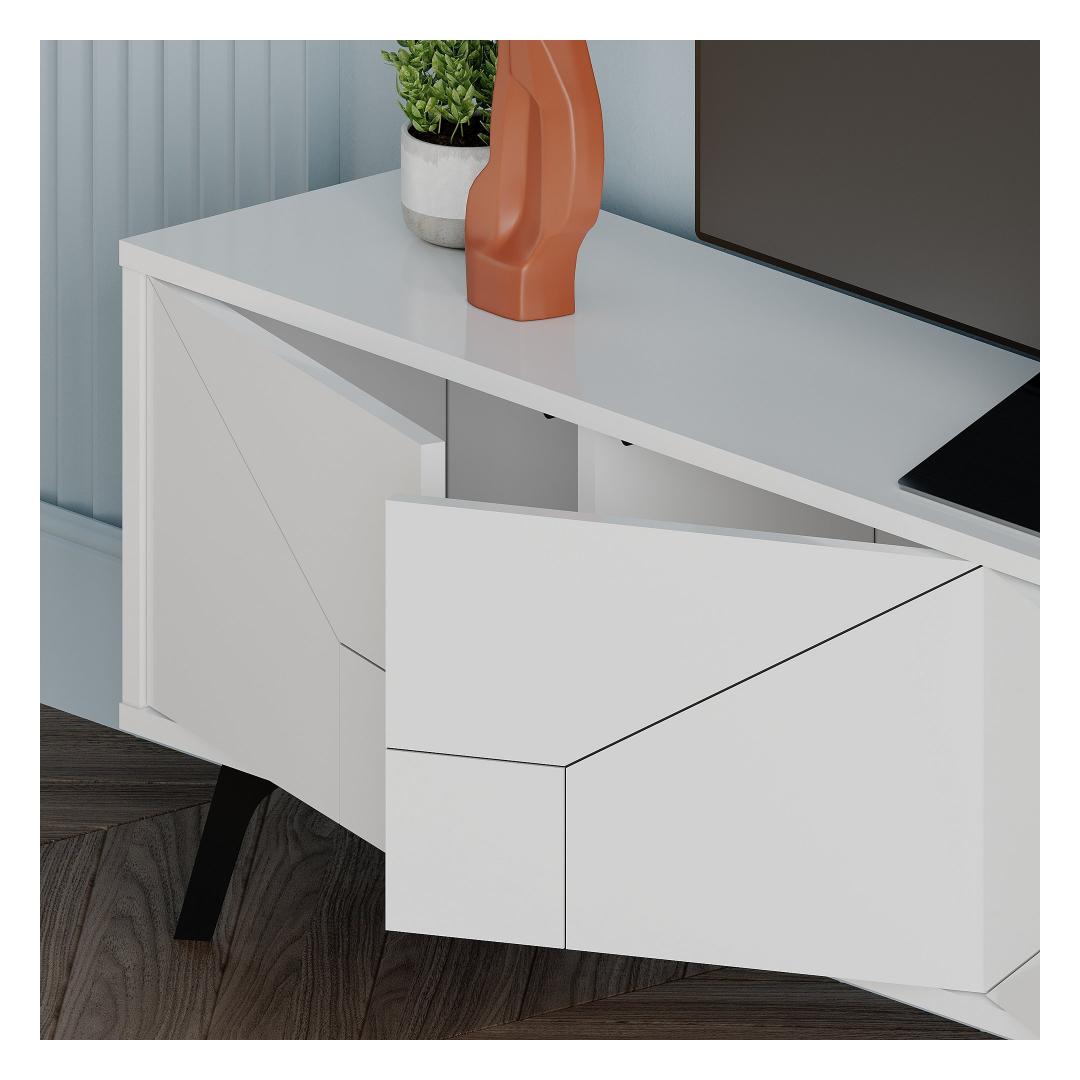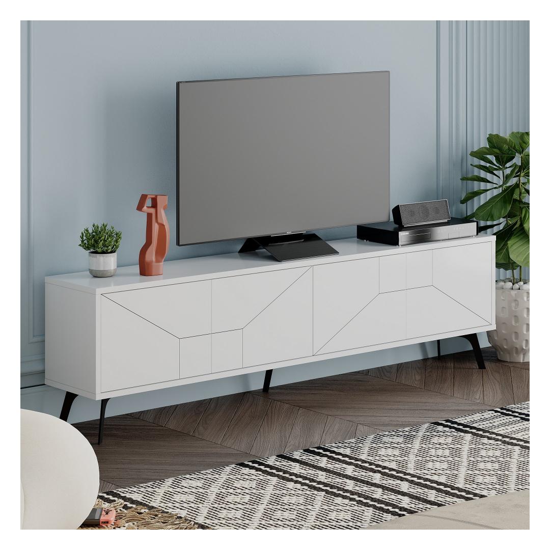 The clean lines and minimalist design of this TV stand make it a perfect addition to any contemporary home. The white color adds a touch of freshness and brightness to your living room, while the metal legs provide a sleek and modern touch.