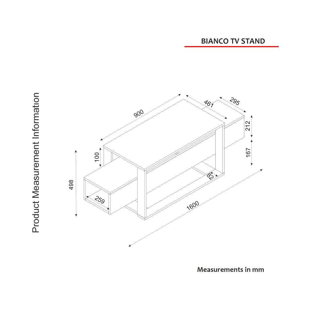With a total size of 160 cm in width, 49.8 cm in height, and 46.1 cm in depth, this TV stand offers ample space for your television and other entertainment essentials. The top shelf, with a width of 90 cm, provides a perfect spot for your TV, while the numerous shelves underneath offer additional storage for your media devices, books, and decorative items.