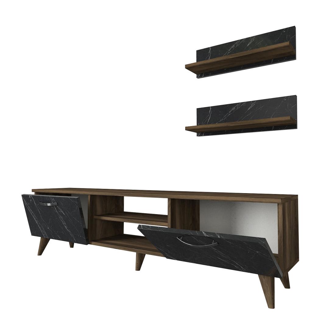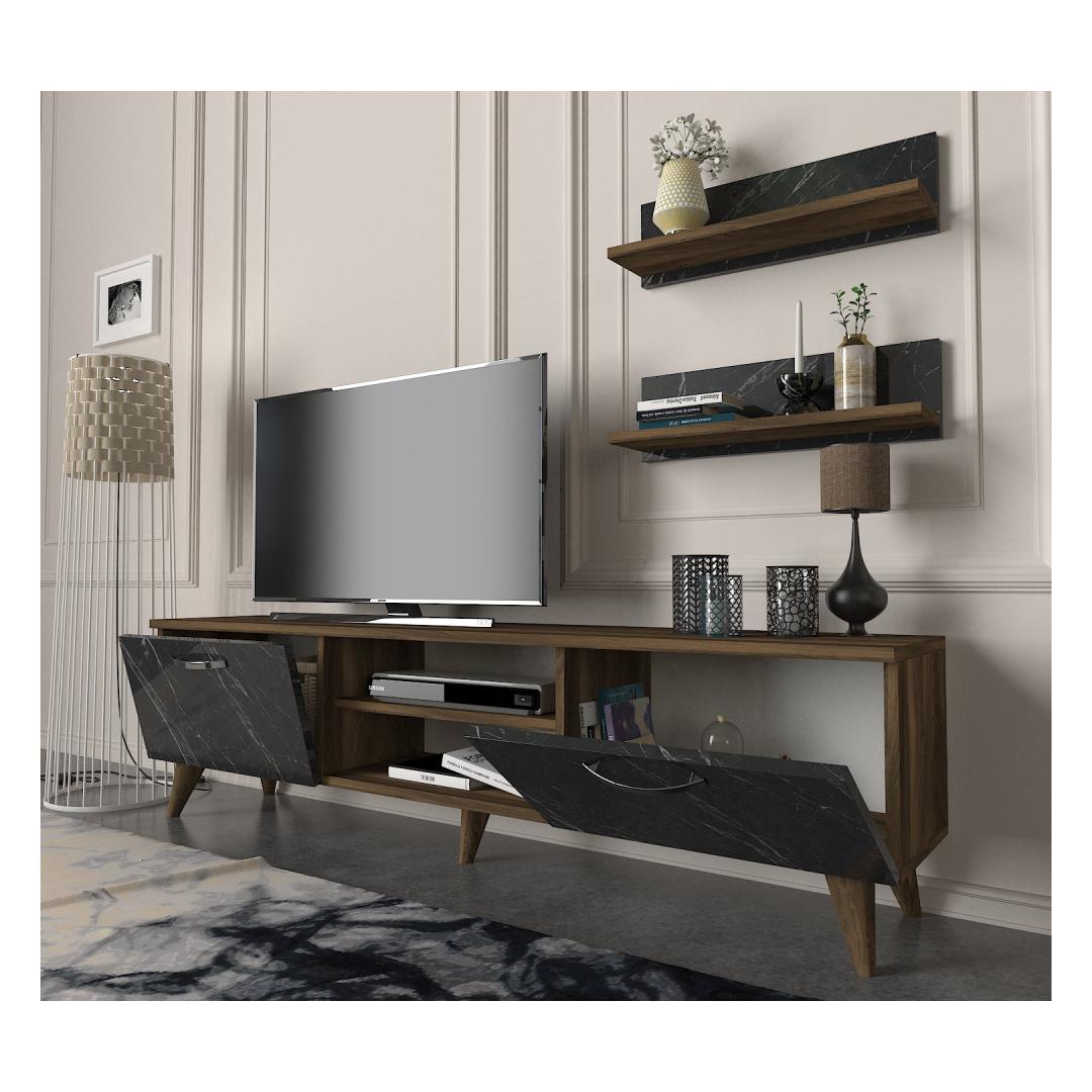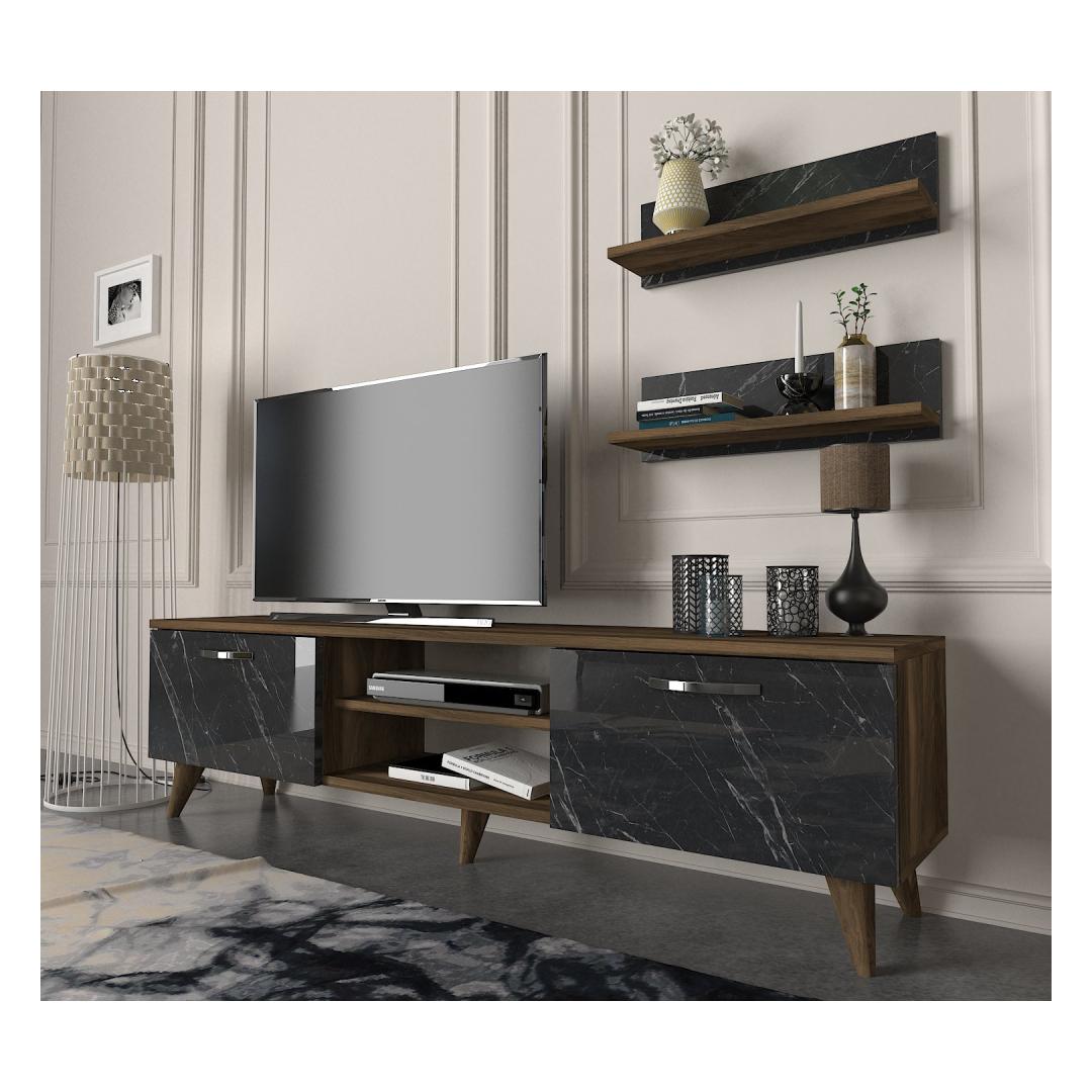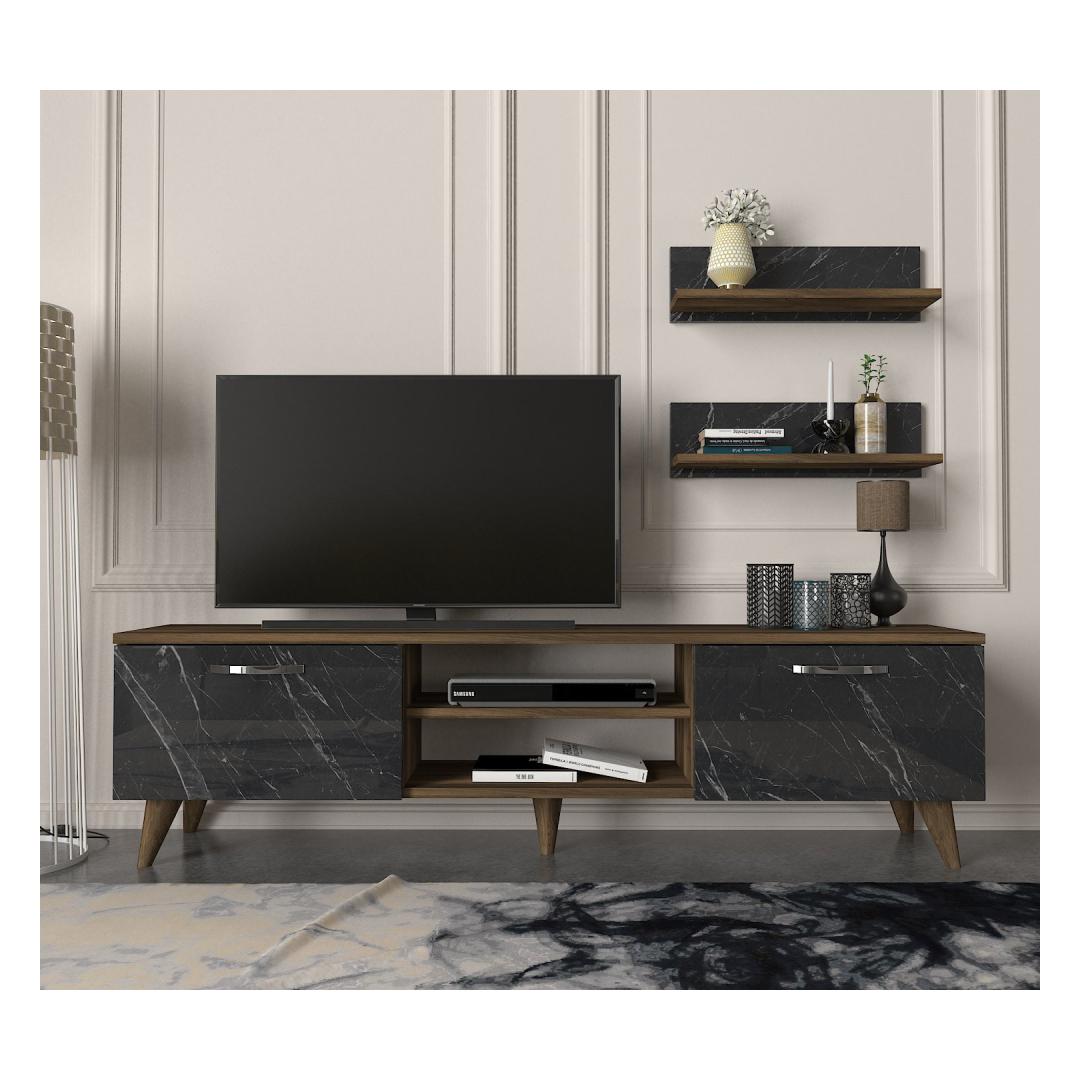 With its modern design and sleek finish, this TV unit is the perfect addition to your home decor. The walnut and marble colors create a sophisticated look that will impress your guests and make your living room feel like a luxurious retreat.