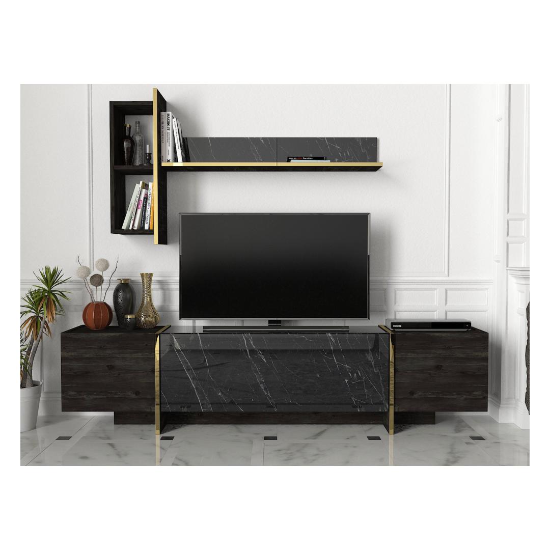 Introducing our stunning TV Unit, a masterpiece that will transform your living space into a haven of elegance and sophistication. With its sleek design and luxurious black and gold color combination, this unit exudes a sense of modernity and novelty.
