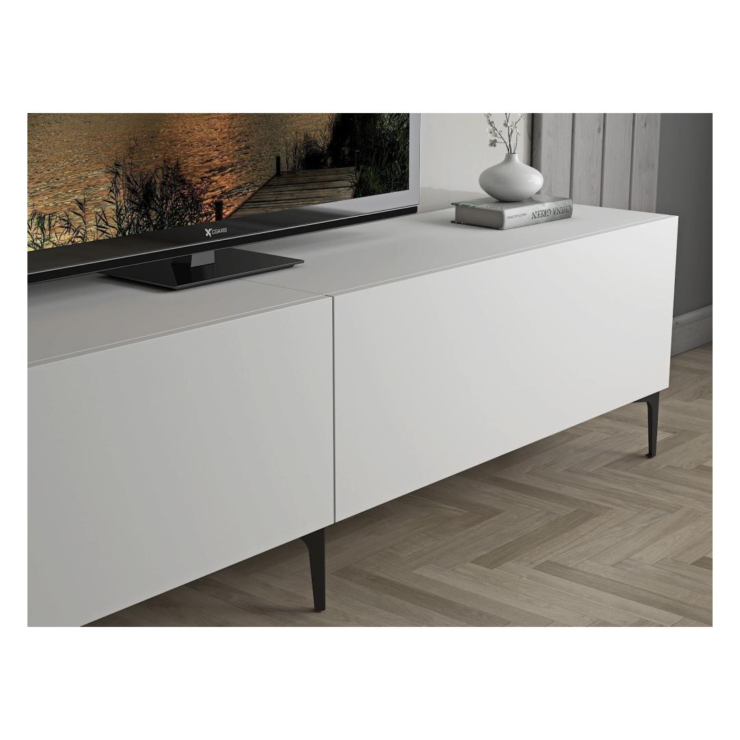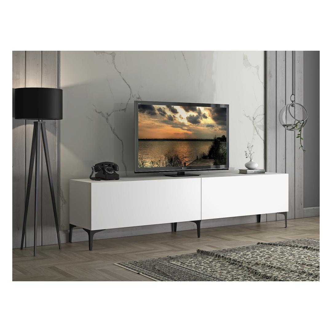 Transform your living room into a stylish and organized space with our sleek and modern TV stand. Made from 100% chipboard, this TV stand is not only durable but also adds a touch of elegance to your home decor. The 18 mm thickness and 0.8 mm PVC band ensure a sturdy construction that will last for years to come.
