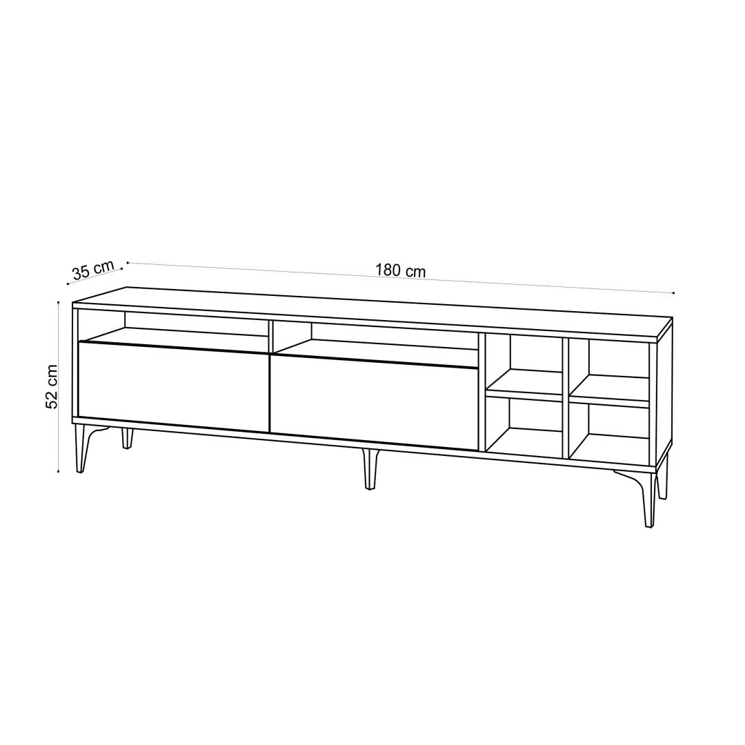 Featuring a generous width of 180cm, this TV stand offers plenty of space to accommodate your television and other entertainment essentials. The numerous shelves provide convenient storage for your gaming consoles, DVD players, and more, keeping everything organized and within reach.