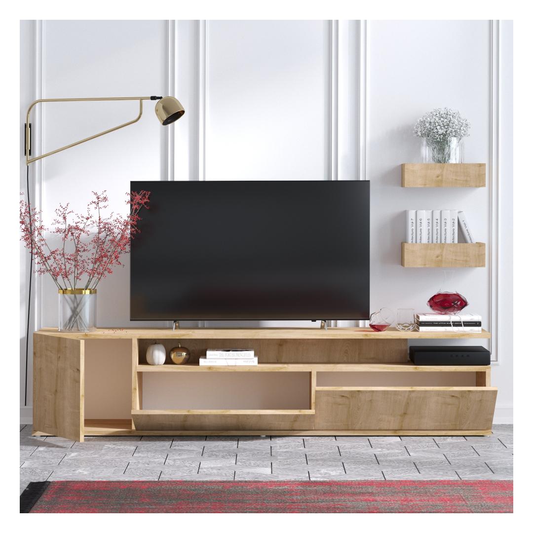 With numerous shelves, this TV unit provides ample storage space for all your entertainment essentials. From gaming consoles to DVD players, you can keep everything organized and within reach. The top shelf offers a height of 13 cm, perfect for displaying your favorite decorative items.