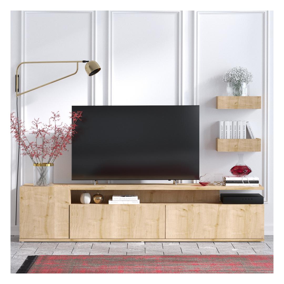 Upgrade your living room with our stunning TV unit that combines functionality with contemporary design. Crafted from 100% melamine coated particle board, this TV unit is built to last and withstand daily use. Its solid color and modern novelty concept will add a touch of elegance to any space.