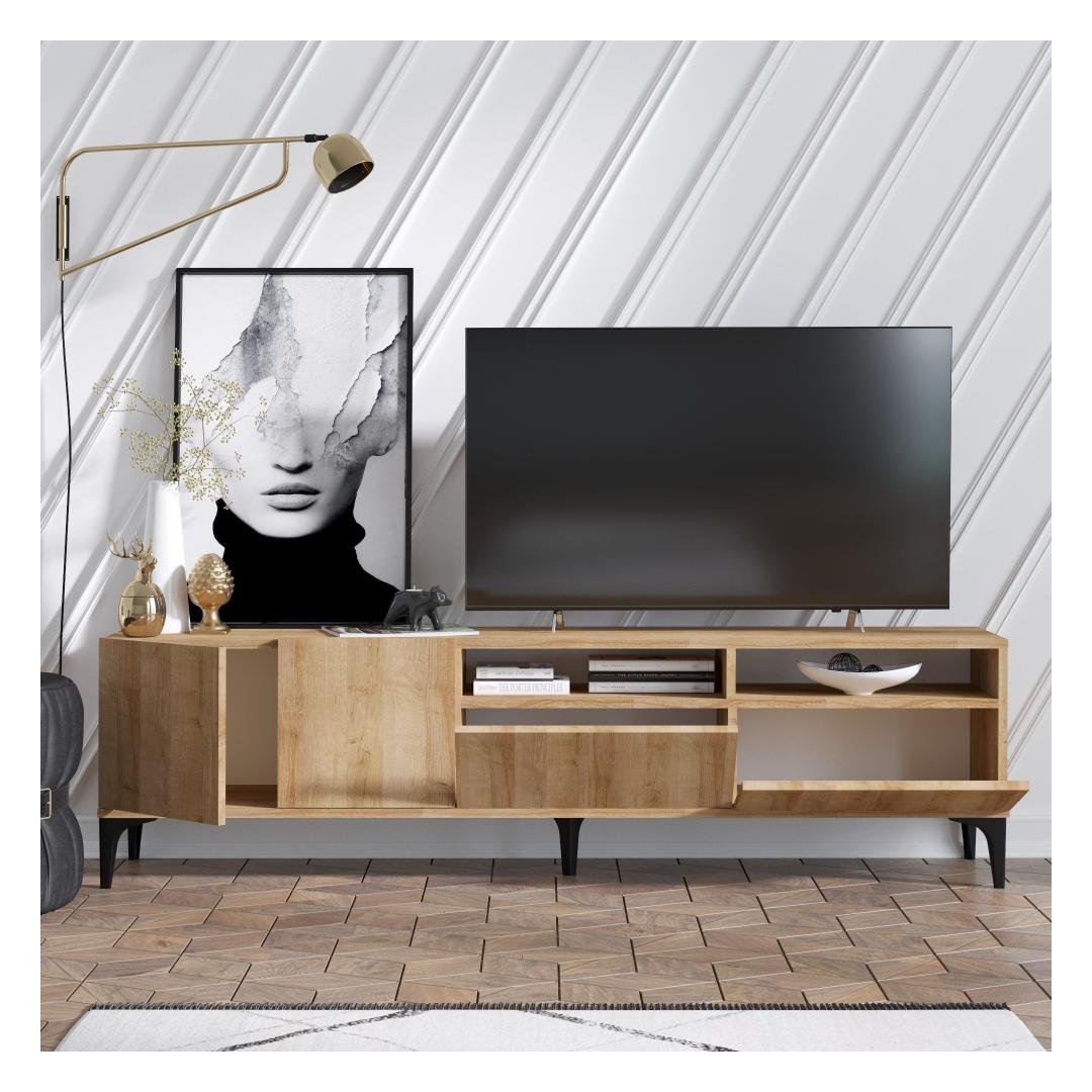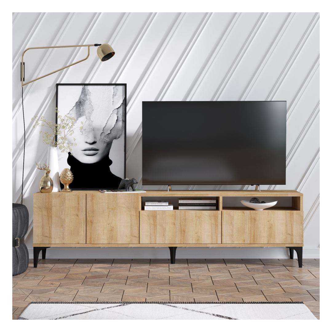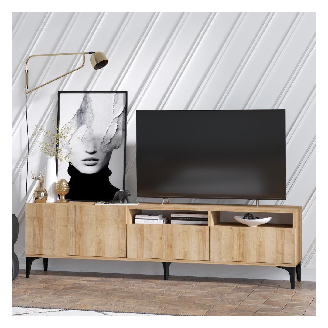 Featuring a beautiful oak color, our TV stand effortlessly blends into any home decor style. Whether you prefer a traditional, industrial, or Scandinavian theme, this versatile piece will complement your existing furniture and add a touch of elegance to your space.