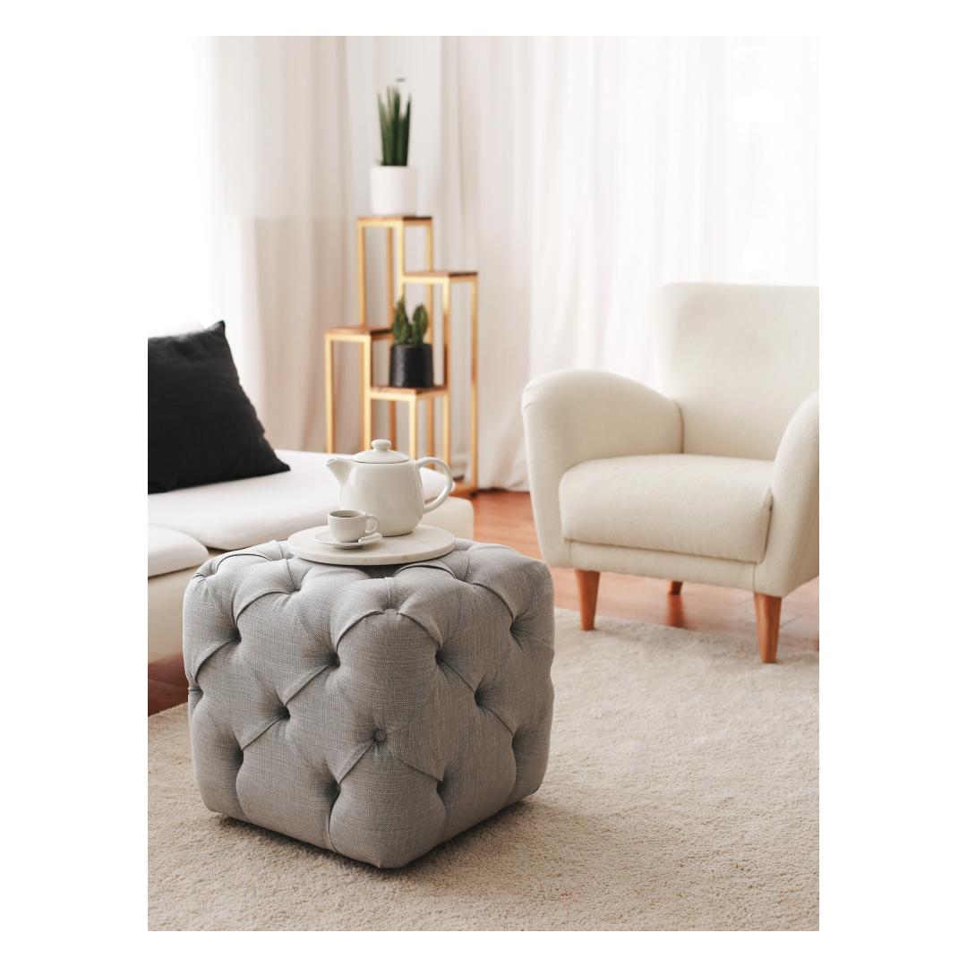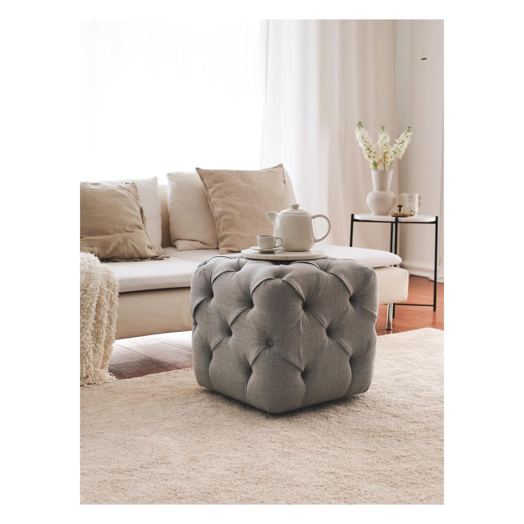 Introducing our exquisite Grey Linen Pouffe, a must-have addition to your home decor that will instantly elevate the ambiance of any room.