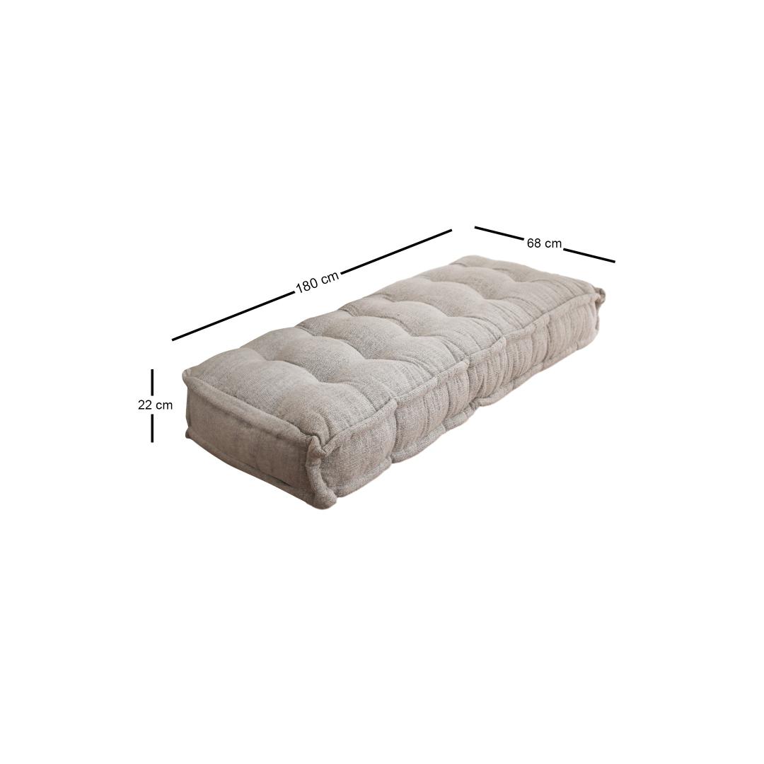 Measuring at 180 cm in width, 22 cm in height, and 68 cm in depth, our cushion provides ample space for you to sink into. Its generous size makes it versatile and suitable for various furniture pieces, including sofas, beds, and chairs.
