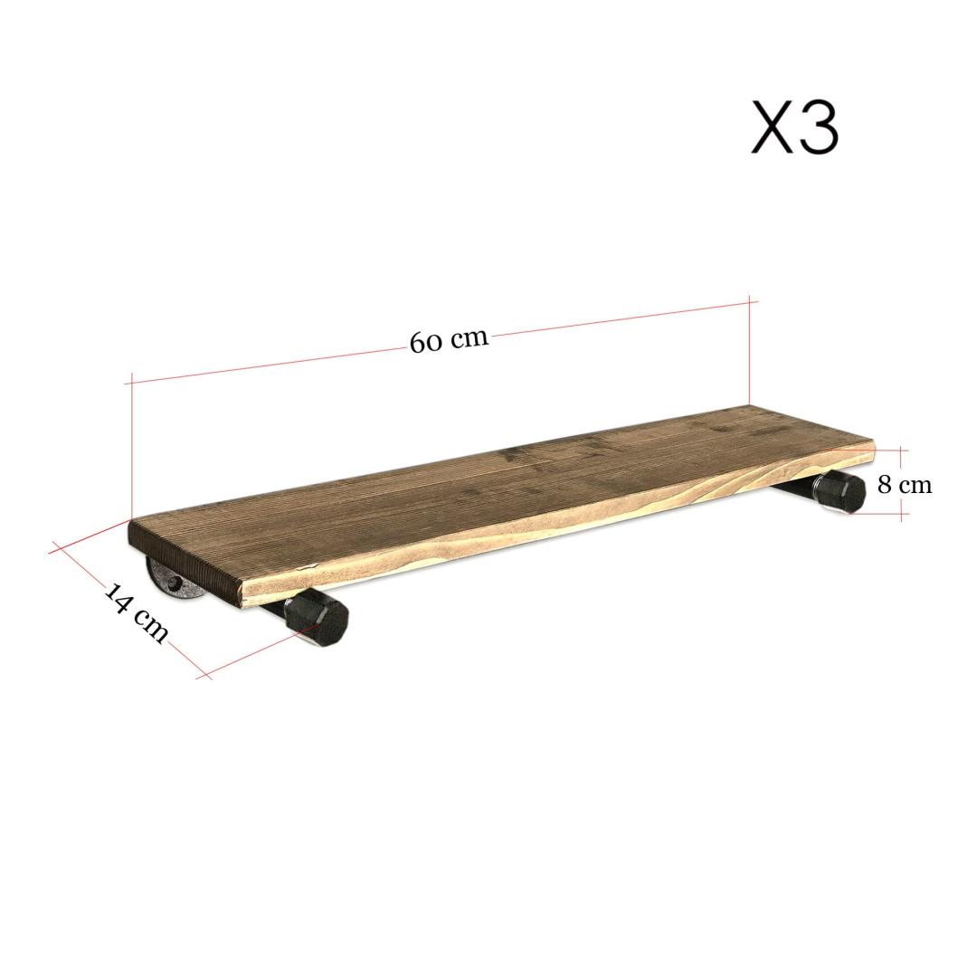 With a width of 60 cm, height of 8 cm, and depth of 14 cm, this Pipe Shelf comes in three pieces that can be easily assembled. It can be fixed to the wall, allowing you to customize its placement according to your preferences.