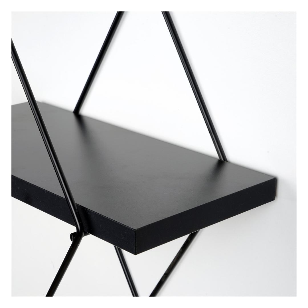 The shelf is designed in a classic black color, adding a touch of sophistication to any room. Its versatile hue effortlessly complements any existing decor, making it a seamless addition to your home.