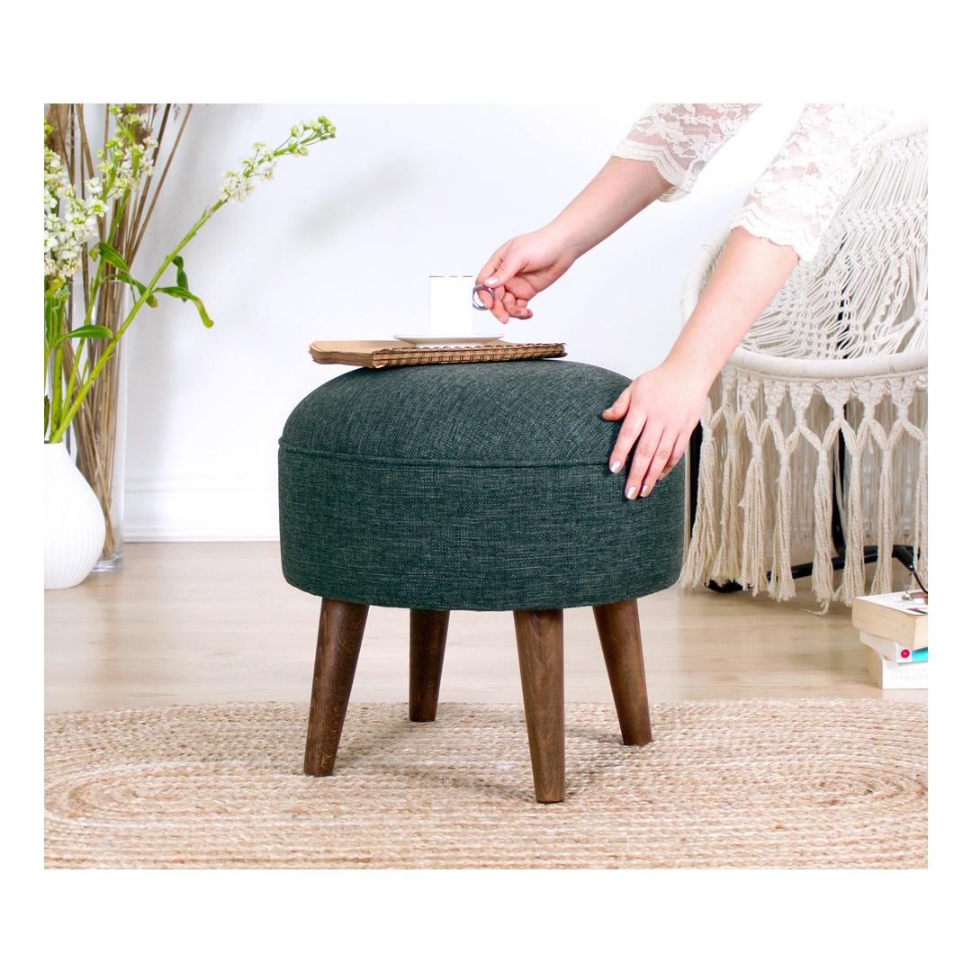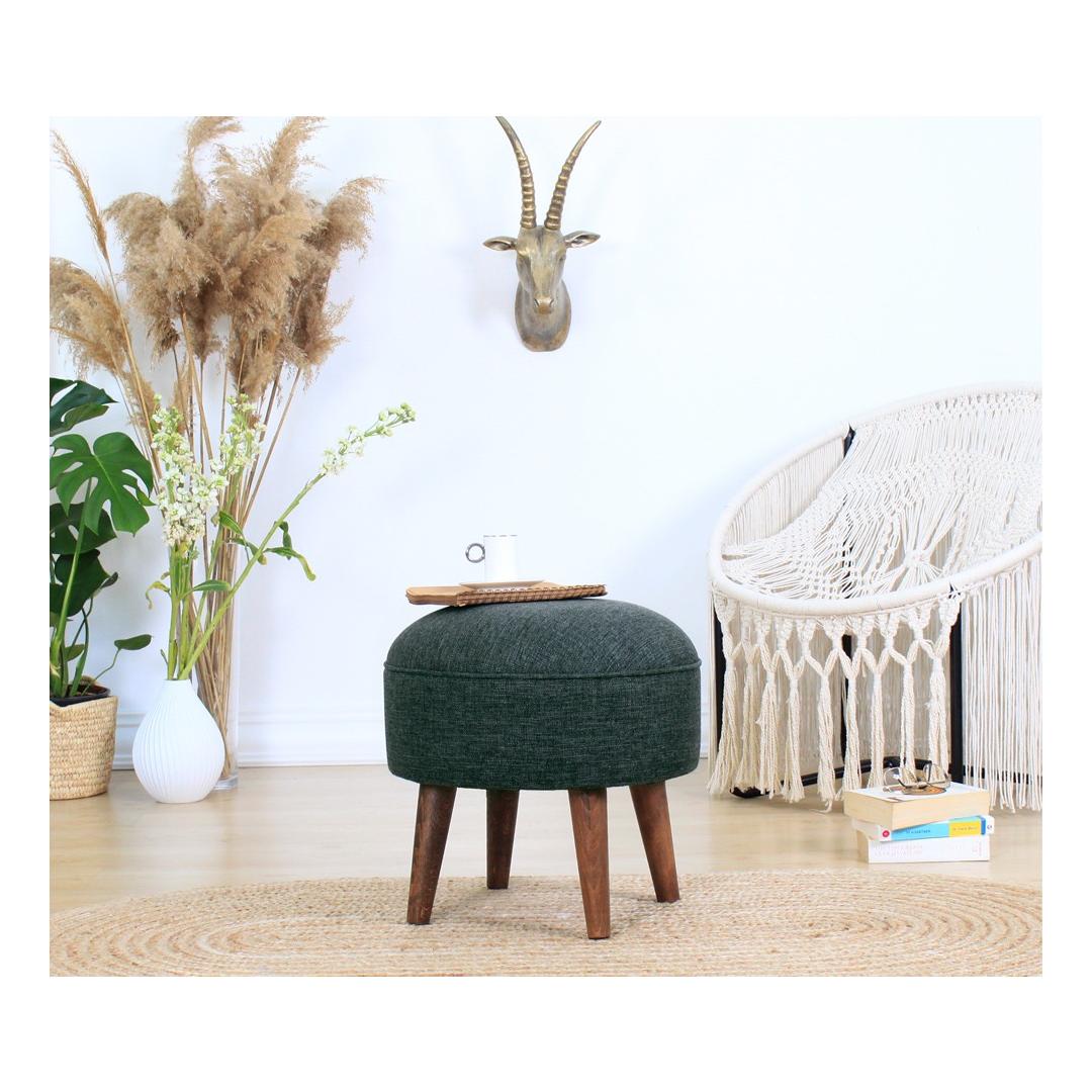 Our pouffe not only provides exceptional comfort but also adds a touch of elegance to your space. The wooden legs add a sophisticated touch, while the combination of grey and green colors creates a visually stunning piece that will effortlessly complement any interior style.