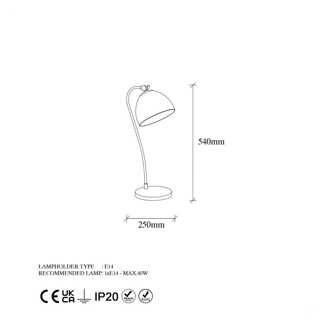 Equipped with an E14 socket type, this lamp allows you to choose a bulb with a maximum power of 40 W, providing you with the ideal lighting ambiance for any occasion. Its IP20 rating ensures safety and peace of mind.