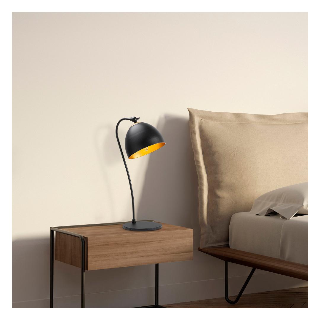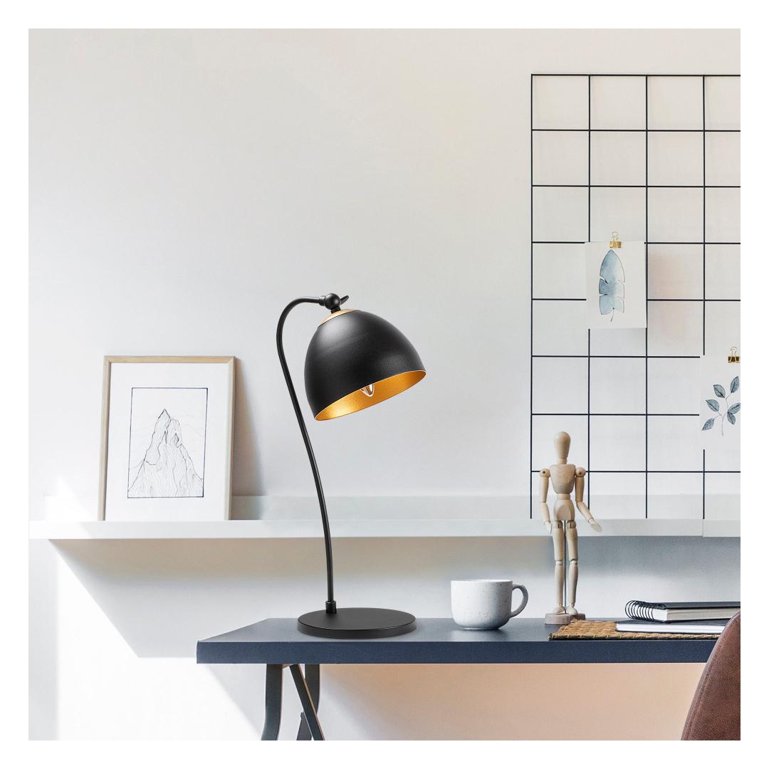 Crafted with a sturdy metal body, this lamp exudes durability and strength. The sleek metal cap adds a touch of glamour, making it a perfect fit for any modern or industrial setting. Its captivating black and gold color combination effortlessly adds a luxurious touch to your space.