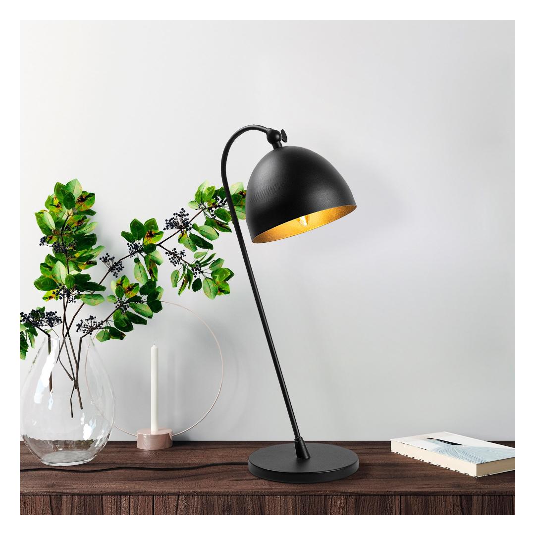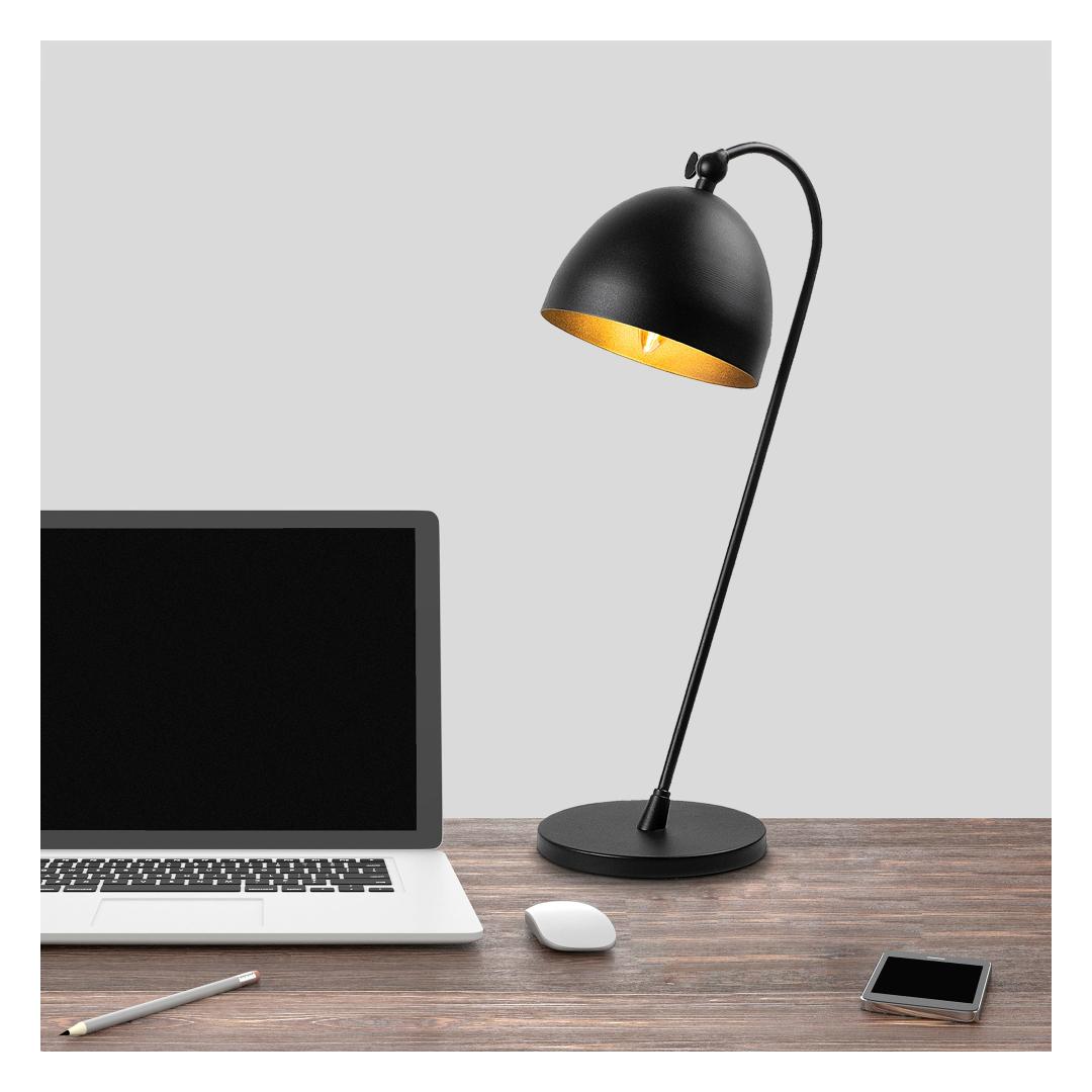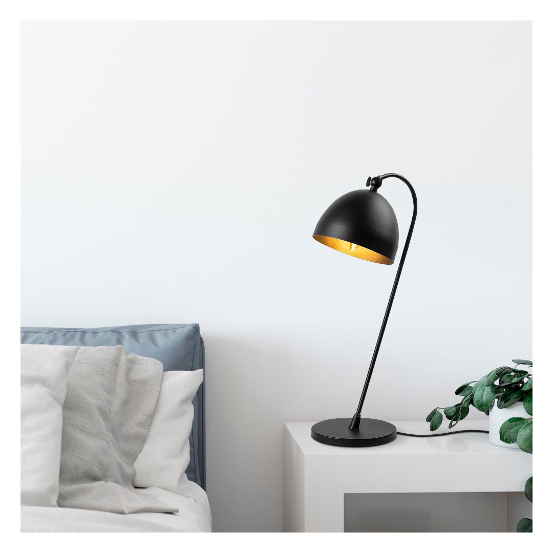 The black and gold color combination of this lamp creates a striking visual contrast, making it a statement piece in any interior. The solid black color adds a touch of mystery and allure, while the gold accents bring a sense of luxury and opulence.