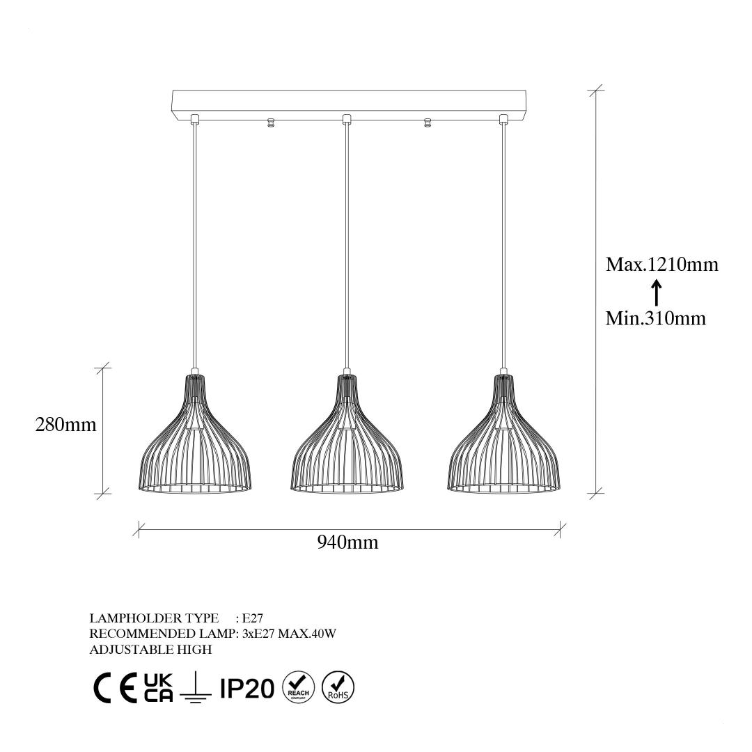 With an adjustable height and three E27 sockets, this chandelier offers both style and functionality. You can customize the height to suit your space and easily install your preferred light bulbs for the perfect ambiance.