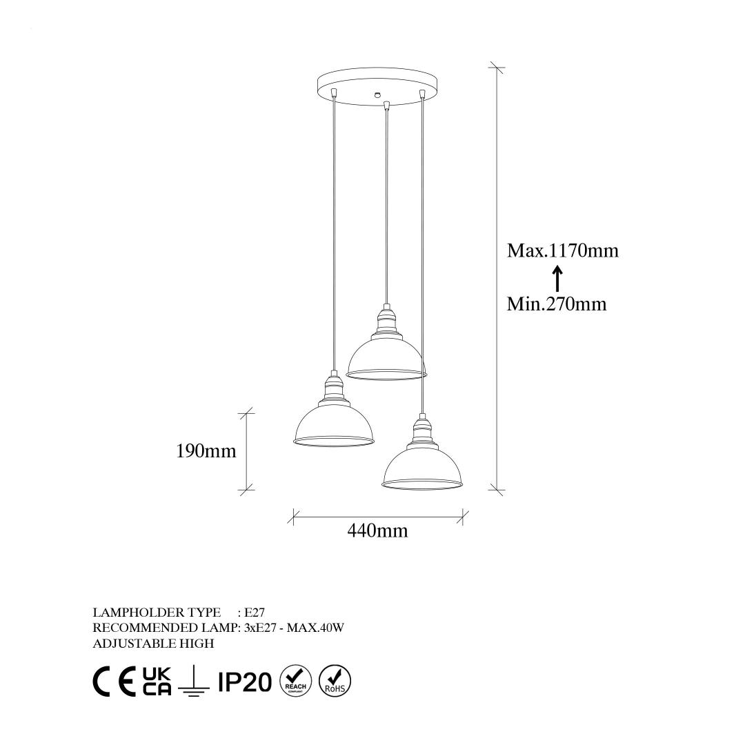 • Socket Type: 3 x E27 Max 40 W for versatile lighting options
