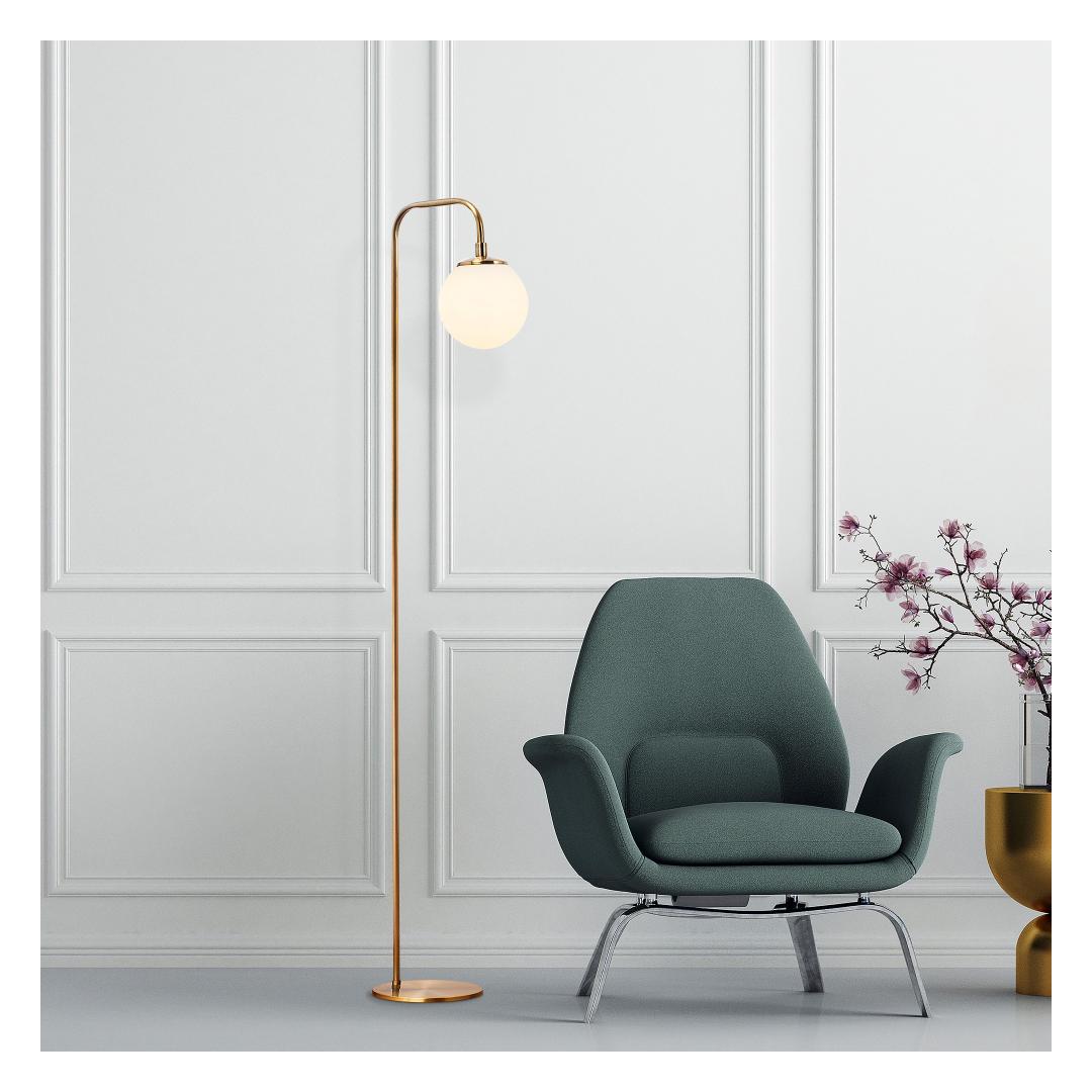 Made with a sturdy metal body, this floor lamp is built to last. Its sleek glass cap adds a touch of elegance, making it a statement piece in any room. The vintage color(s) of this lamp give it a timeless appeal, making it suitable for various interior styles.