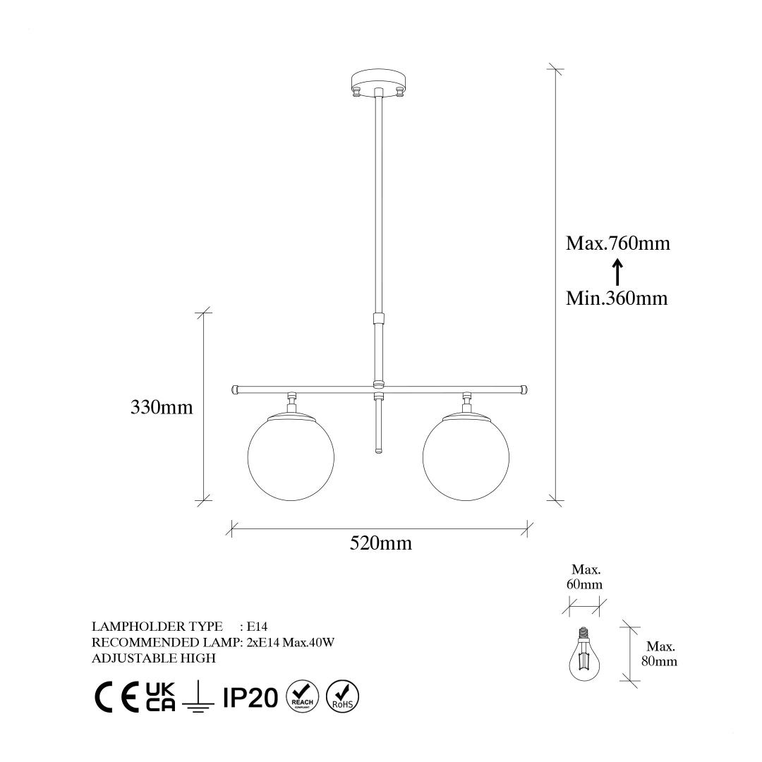 • Socket Type: 2 x E 14 Max 40 W