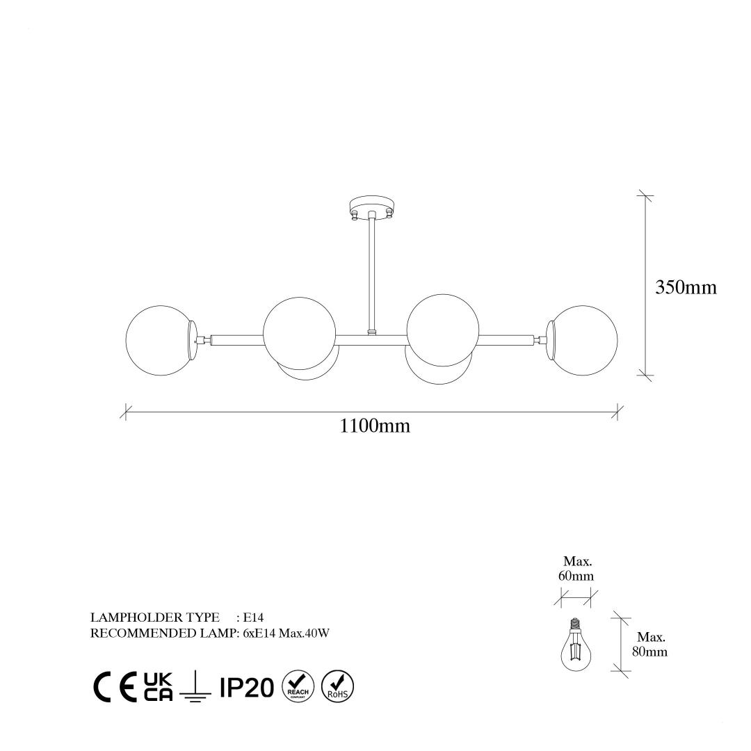 • Socket type: 6 x E14 Max 40 W