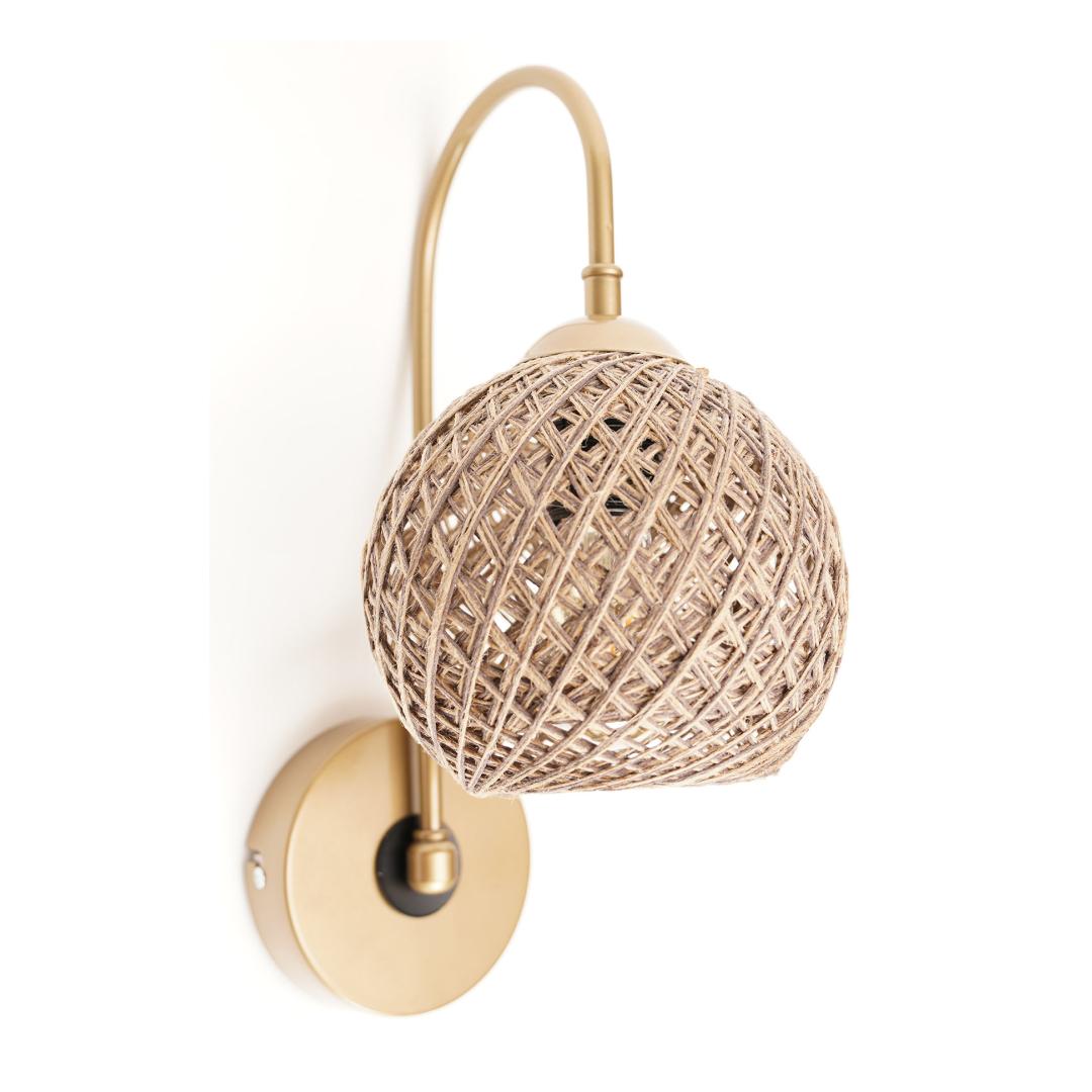 Illuminate your space with the warm and inviting glow of our stunning Wall Lamp. Crafted with a sleek metal body and adorned with a charming jute cap, this lamp exudes a sense of modern novelty and glamour that will elevate any room in your home. The perfect blend of Southwestern and country charm, this lamp adds a touch of rustic elegance to your decor.