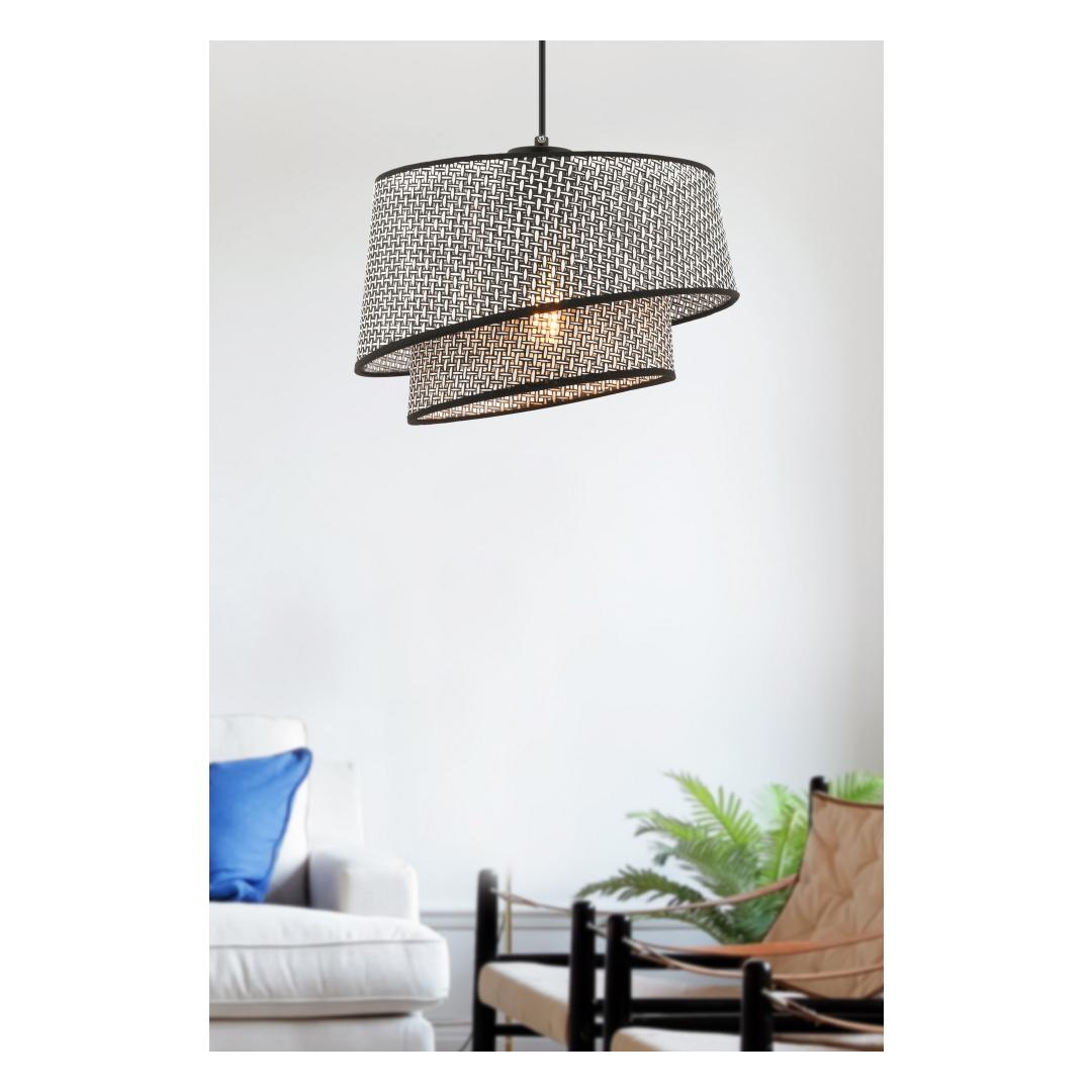 Illuminate your space with the soft glow of this chandelier. The fabric cap diffuses the light beautifully, creating a warm and inviting atmosphere that is perfect for relaxing or entertaining.