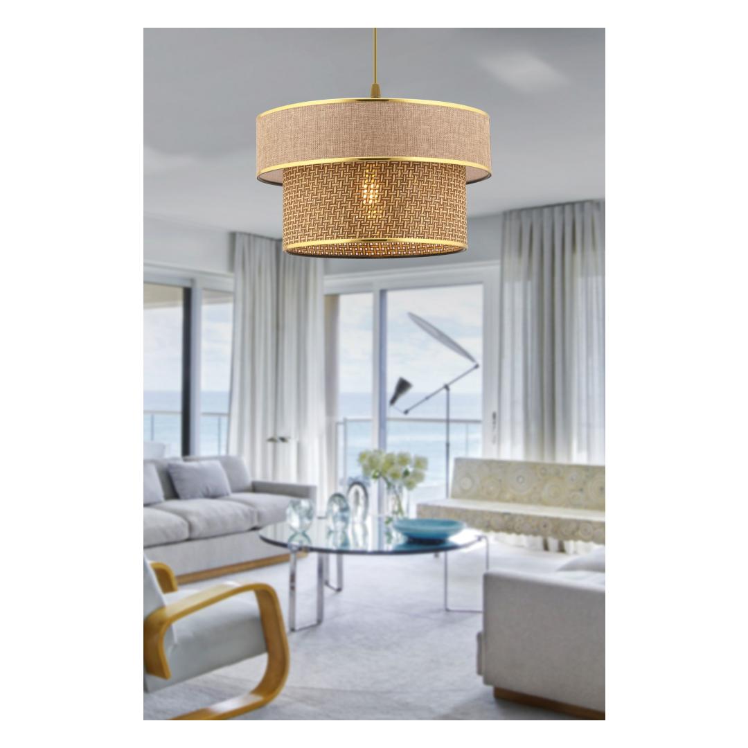 Transform your living space with our stunning Metal Body Chandelier. This exquisite piece features a beautifully crafted cotton cap in a neutral beige color, adding a touch of elegance to any room. The chandelier stands at a total height of 65 cm, making it the perfect statement piece for your home.