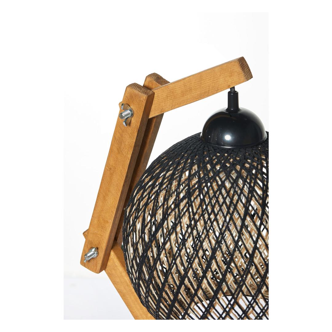Illuminate your space with the warm and inviting glow of our handmade Pine Wood Table Lamp. Crafted with care and attention to detail, this lamp features a unique jute chandelier that adds a touch of rustic charm to any room. The natural tones of ecru, brown, and black blend seamlessly with any decor style, making it a versatile and timeless piece for your home.