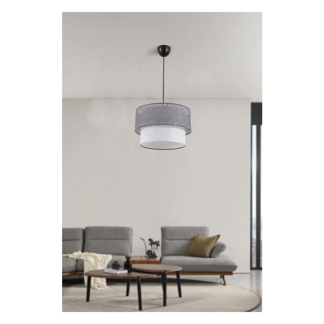 Transform your living space with our stunning chandelier, featuring a sleek metal body and a soft cotton cap in a beautiful grey and white color combination. The elegant design will add a touch of sophistication to any room, creating a warm and inviting atmosphere that you and your guests will love.