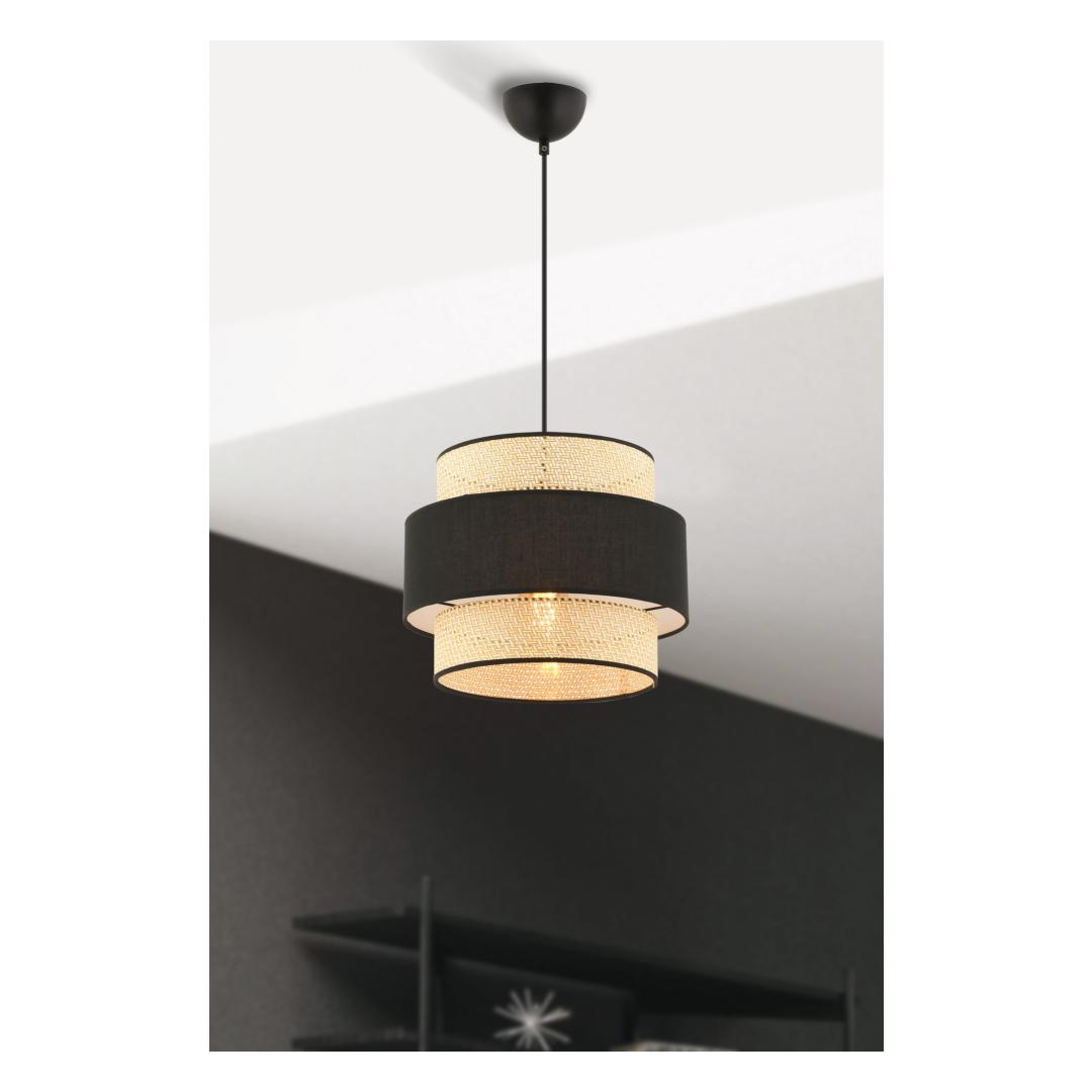 Transform your living space with our stunning Camel and Black Chandelier. This exquisite piece will add a touch of elegance and sophistication to any room, creating a warm and inviting atmosphere that you and your guests will love. The metal body and fabric cap combine to create a unique and eye-catching design that is sure to impress.