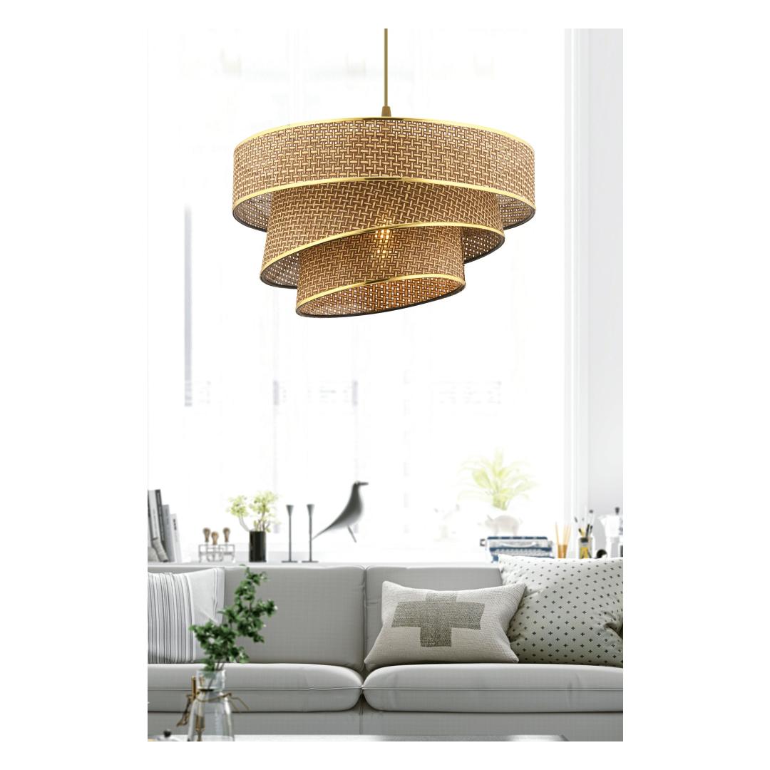 With its soft beige and shimmering gold colors, this chandelier exudes warmth and sophistication. The gentle glow of the light will create a cozy and inviting ambiance that is perfect for relaxing after a long day or entertaining guests. Let the Beige and Gold Chandelier be the finishing touch that ties your room together and makes it feel like a true sanctuary.