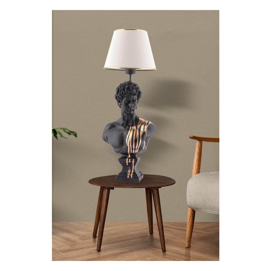 Illuminate your space with our stunning table lamp, designed to bring warmth and style to any room. The elegant polyester body and fabric cap create a sophisticated look that will elevate your home decor. The combination of white, black, and gold colors adds a touch of luxury to your living space, making it the perfect addition to your bedside table or desk.