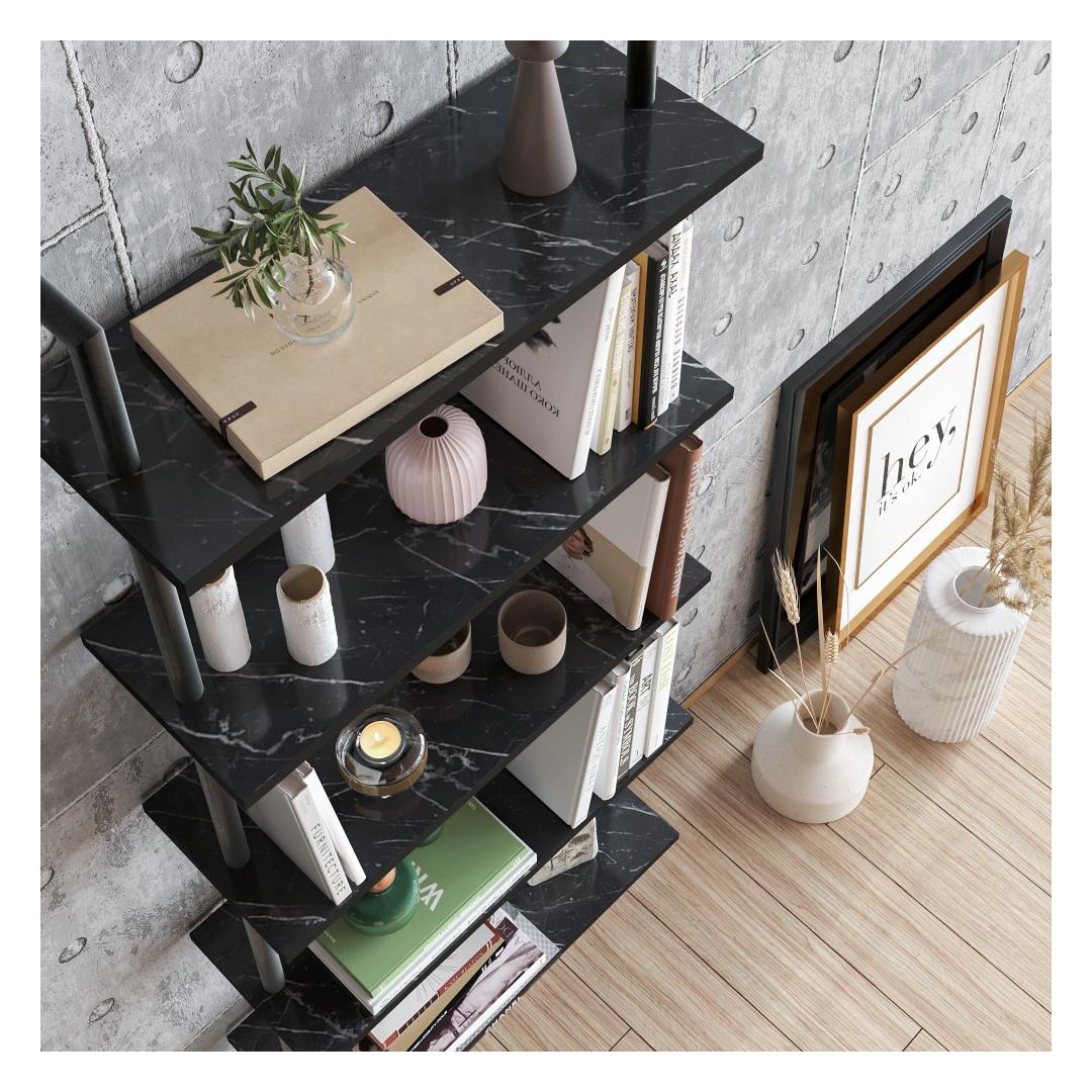 With its sleek design and black color, this bookshelf is the perfect addition to any room. Whether you're a bookworm looking to display your favorite novels or a collector showcasing your treasured possessions, this bookshelf provides ample space for all your needs. The numerous shelves allow you to organize your items in a stylish and efficient manner, while the metal legs add a contemporary touch that will impress your guests.