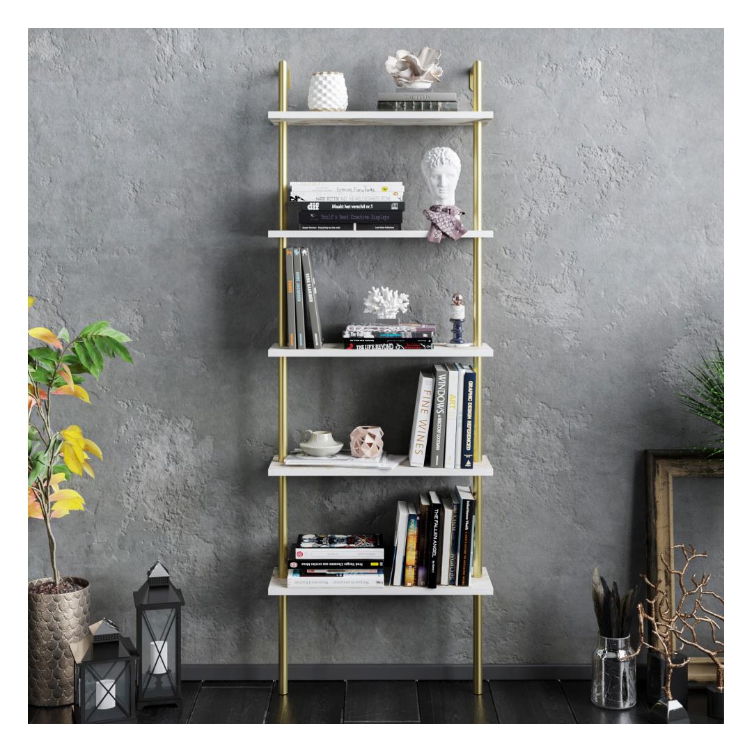 Elevate your home decor with our stunning bookshelf that combines functionality with a touch of glamour. With its sleek design and luxurious white and gold color combination, this bookshelf is sure to become the centerpiece of any room.