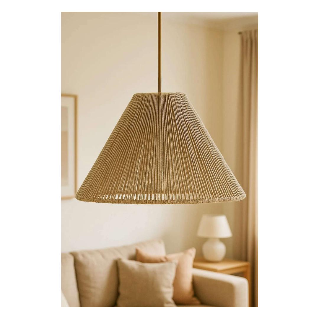 Transform your living space with our stunning plastic chandelier featuring a macrame cap. The intricate design adds a touch of elegance and sophistication to any room, creating a warm and inviting atmosphere that you and your guests will love.