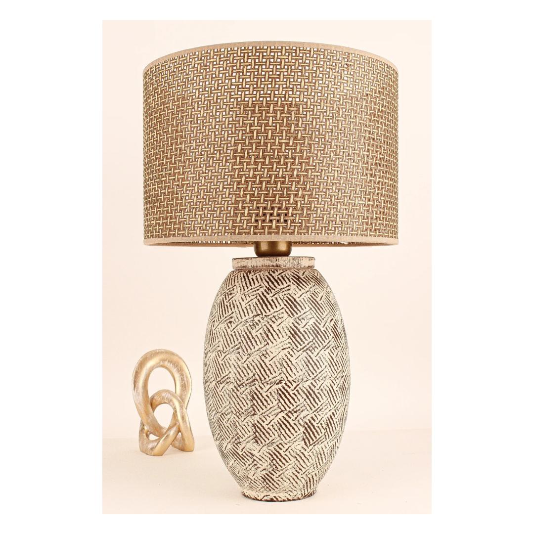 Illuminate your space with the warm and inviting glow of our Ceramic Table Lamp. This stunning piece features a beautifully crafted ceramic body in a harmonious blend of Brown, Cream, and Oak colors, adding a touch of elegance to any room. The PVC cap adds a modern twist to the classic design, making it a versatile addition to your home decor.
