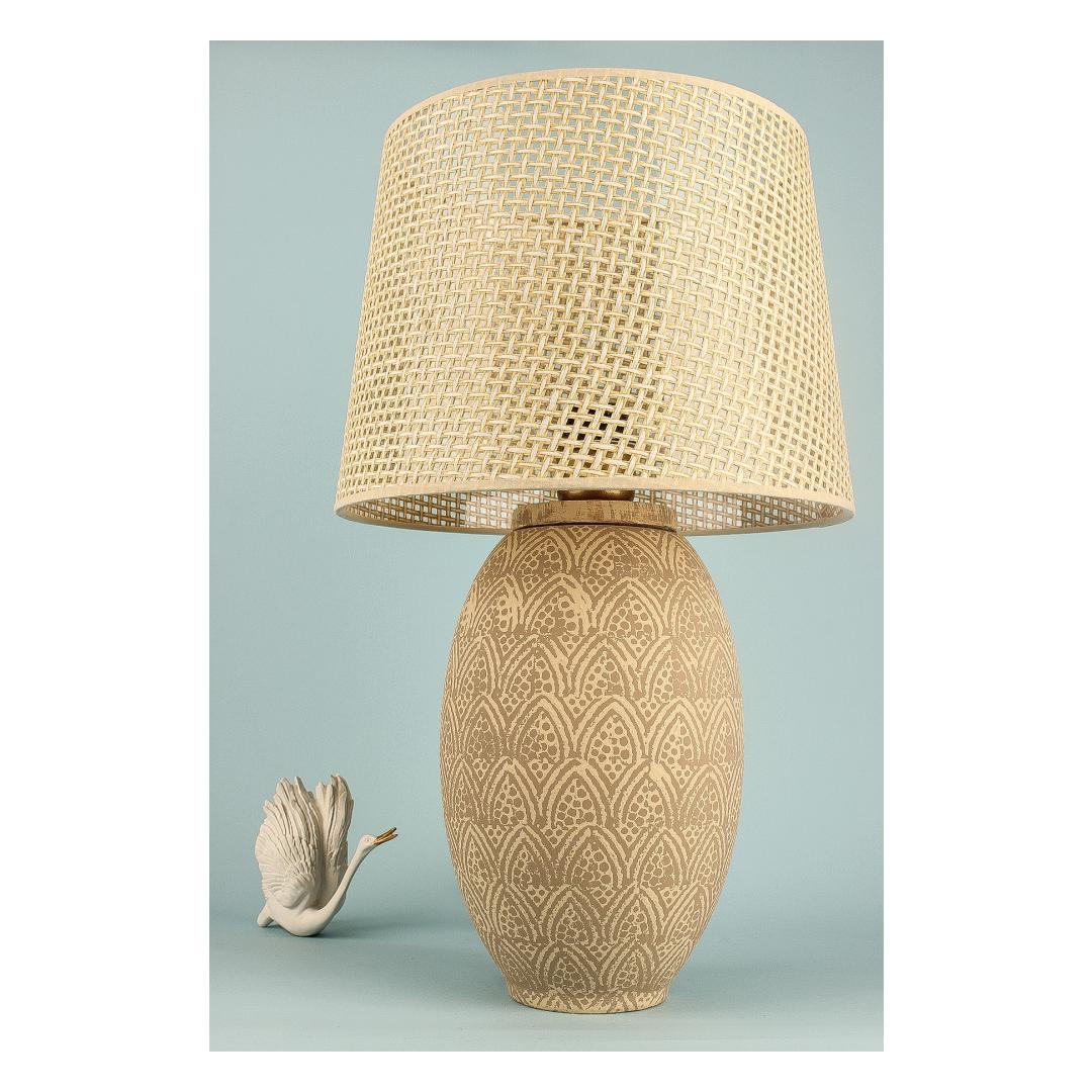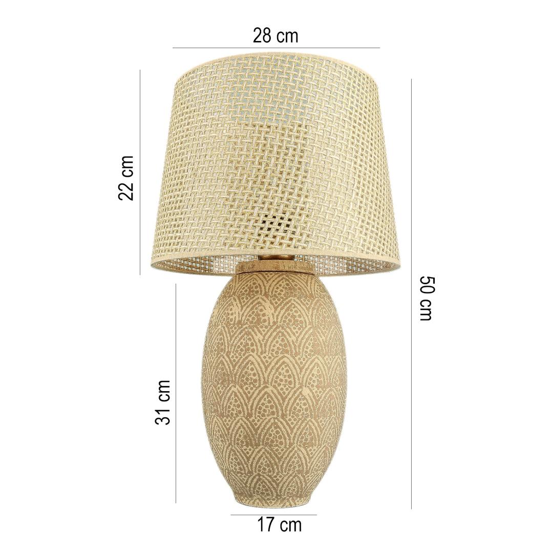 Illuminate your space with the warm and inviting glow of our Ceramic Table Lamp. This stunning piece features a beautifully hand-painted ceramic body in a soothing beige color, adding a touch of elegance to any room. The rattan cap adds a touch of natural charm, creating a perfect balance of modern and rustic design elements.