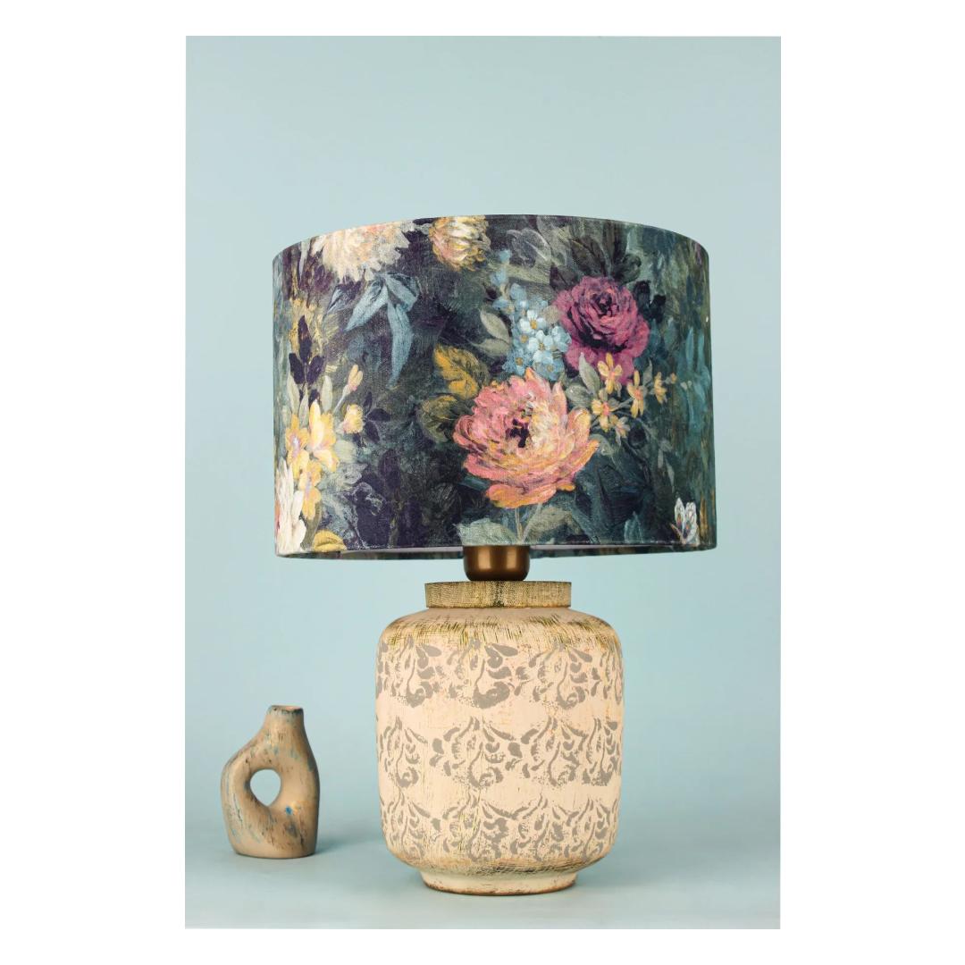 Crafted with attention to detail, this table lamp is not only a functional lighting solution but also a work of art. The ceramic body is durable and long-lasting, ensuring that you can enjoy this lamp for years to come. The velvet cap adds a luxurious touch, making this lamp a statement piece in any room.