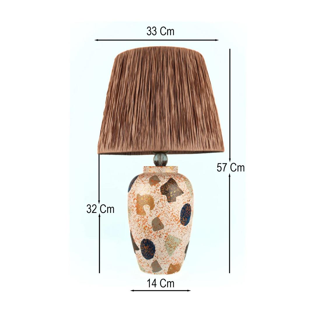 Illuminate your space with the elegant and timeless Ceramic Table Lamp. This stunning piece features a beautifully crafted ceramic body with intricate details that will add a touch of sophistication to any room. The rafia cap adds a unique and stylish touch, making this lamp a true statement piece in your home.