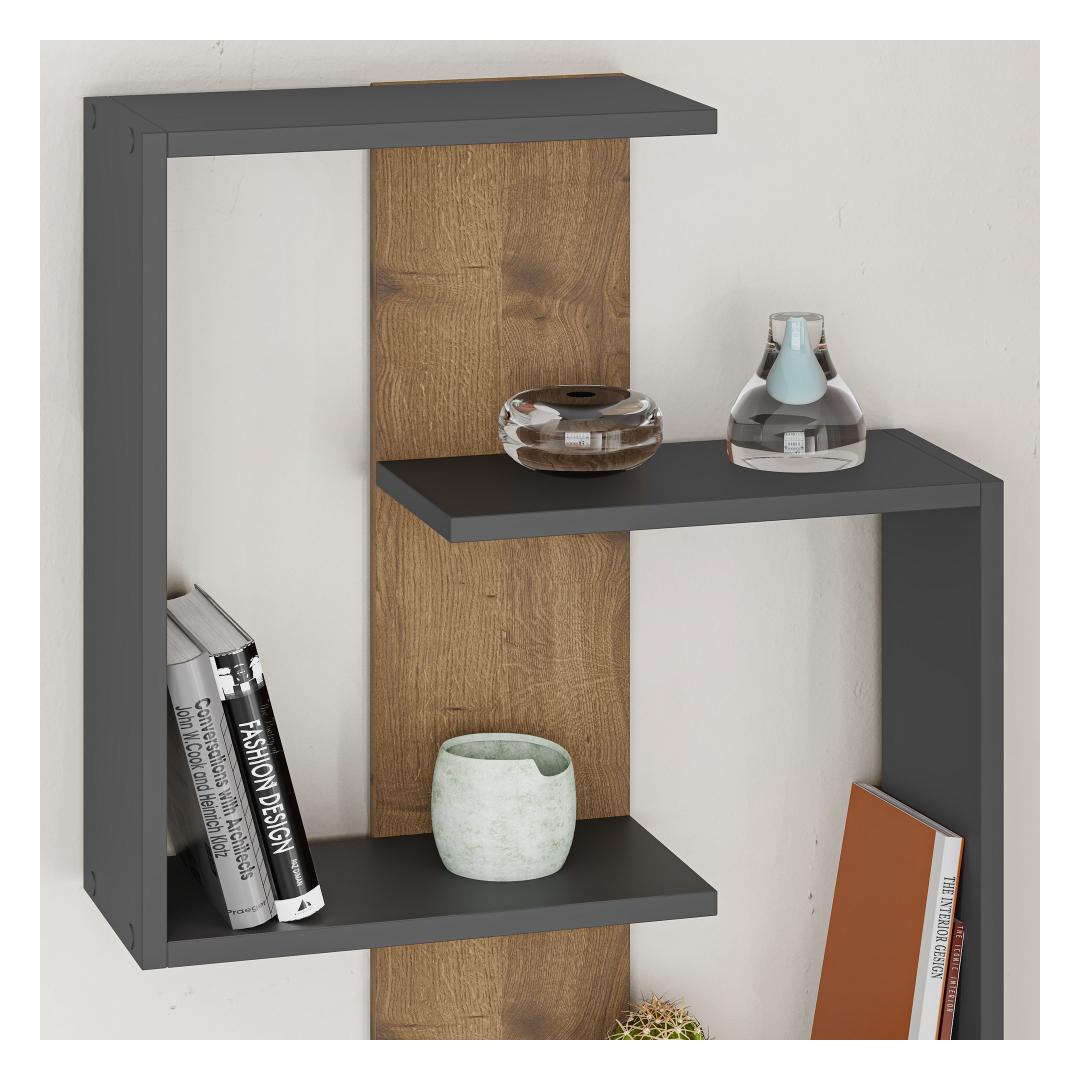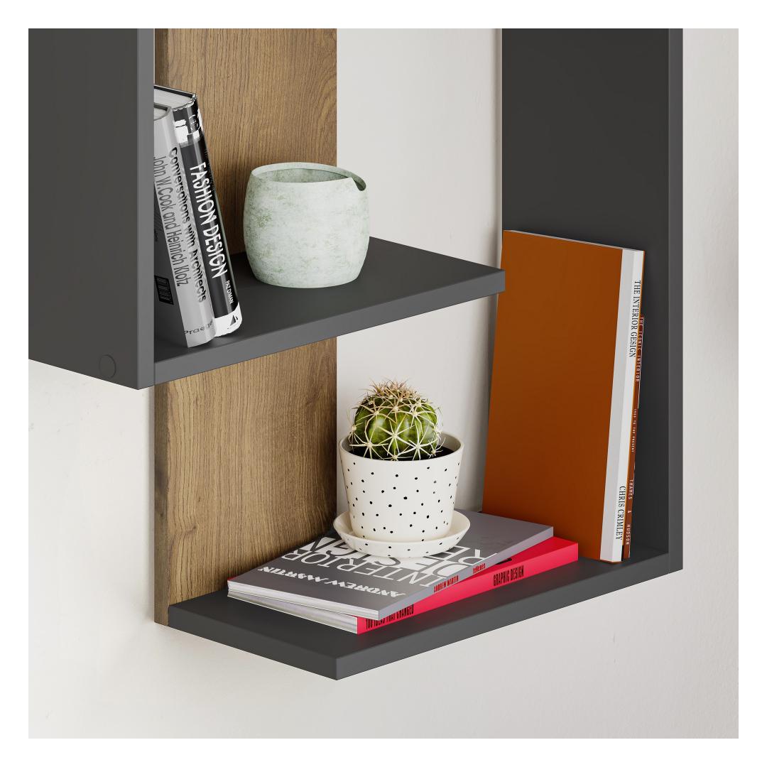 This wall shelf can be easily fixed to the wall, saving valuable floor space. Its versatile design allows you to place it in any room, be it your living room, bedroom, or office. The combination of anthracite and oak colors adds a touch of sophistication to your space, making it visually appealing.