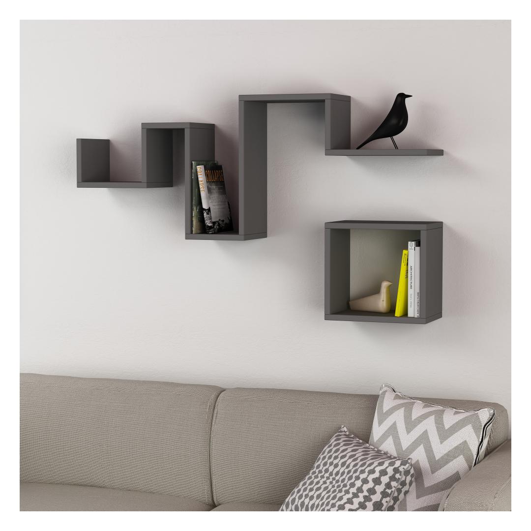 With its numerous shelves, this wall shelf allows you to showcase your favorite books, photos, and decorative items. Its sleek design and anthracite color make it a perfect addition to any modern or minimalist interior.