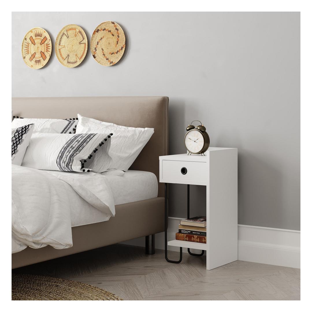With its compact size, our Nightstand is perfect for small spaces. Despite its modest dimensions, it offers ample storage space to keep your nighttime essentials within arm's reach. The spacious drawer provides a convenient spot to store your reading glasses, books, or any other personal items, while the top surface offers a perfect spot for a lamp or your morning coffee.