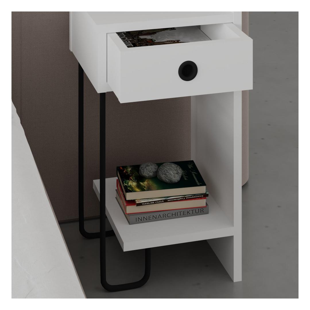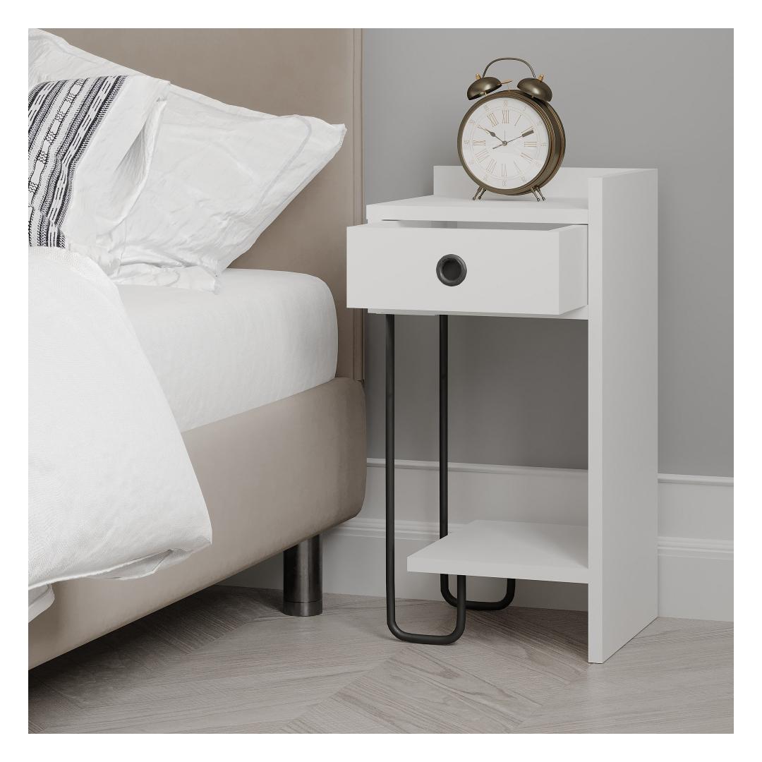Crafted with utmost care and attention to detail, our Nightstand is designed to enhance the ambiance of your bedroom. Its sleek and modern design will effortlessly blend with any decor, adding a touch of sophistication to your space. The pure white color exudes a sense of tranquility and purity, creating a serene atmosphere for a peaceful night's sleep.