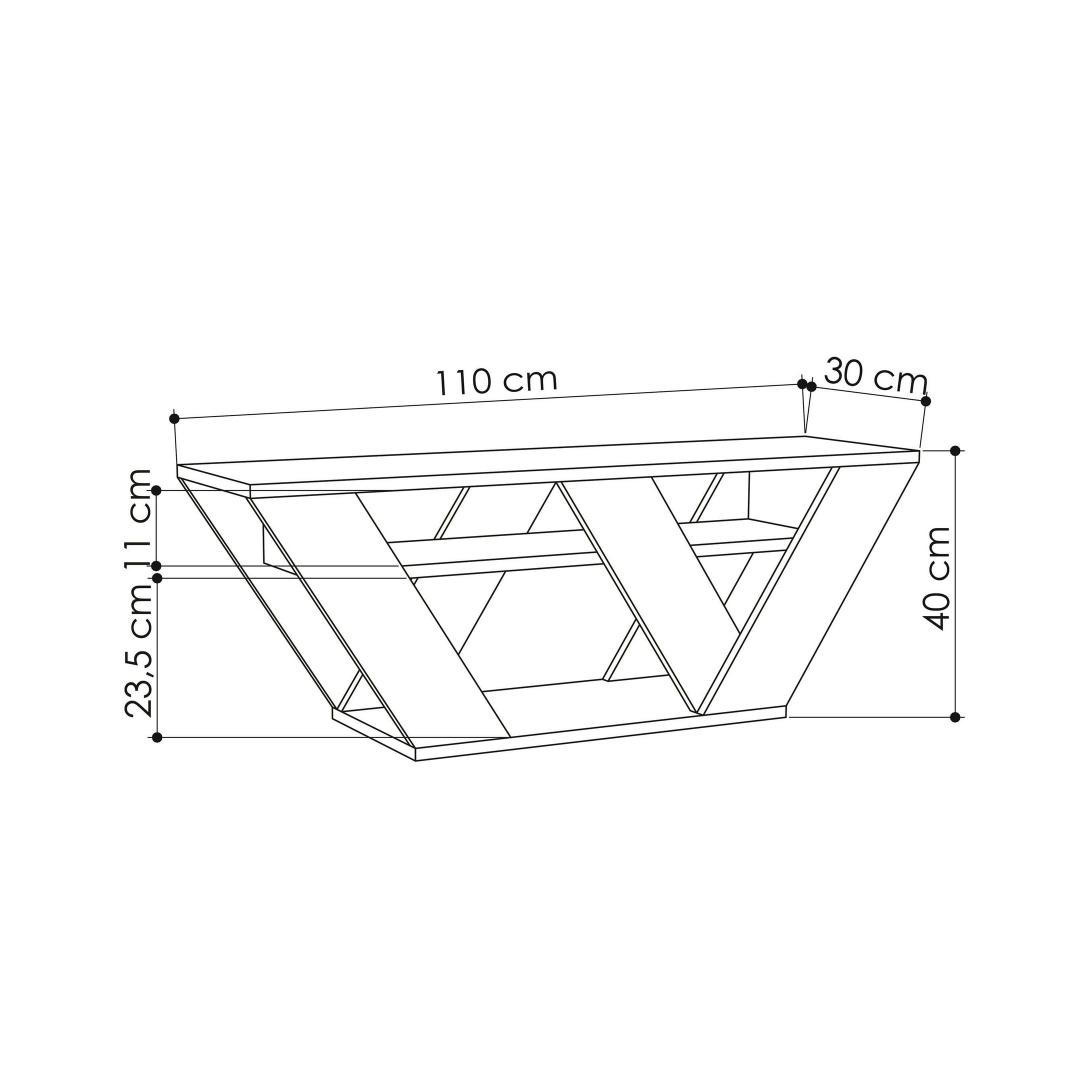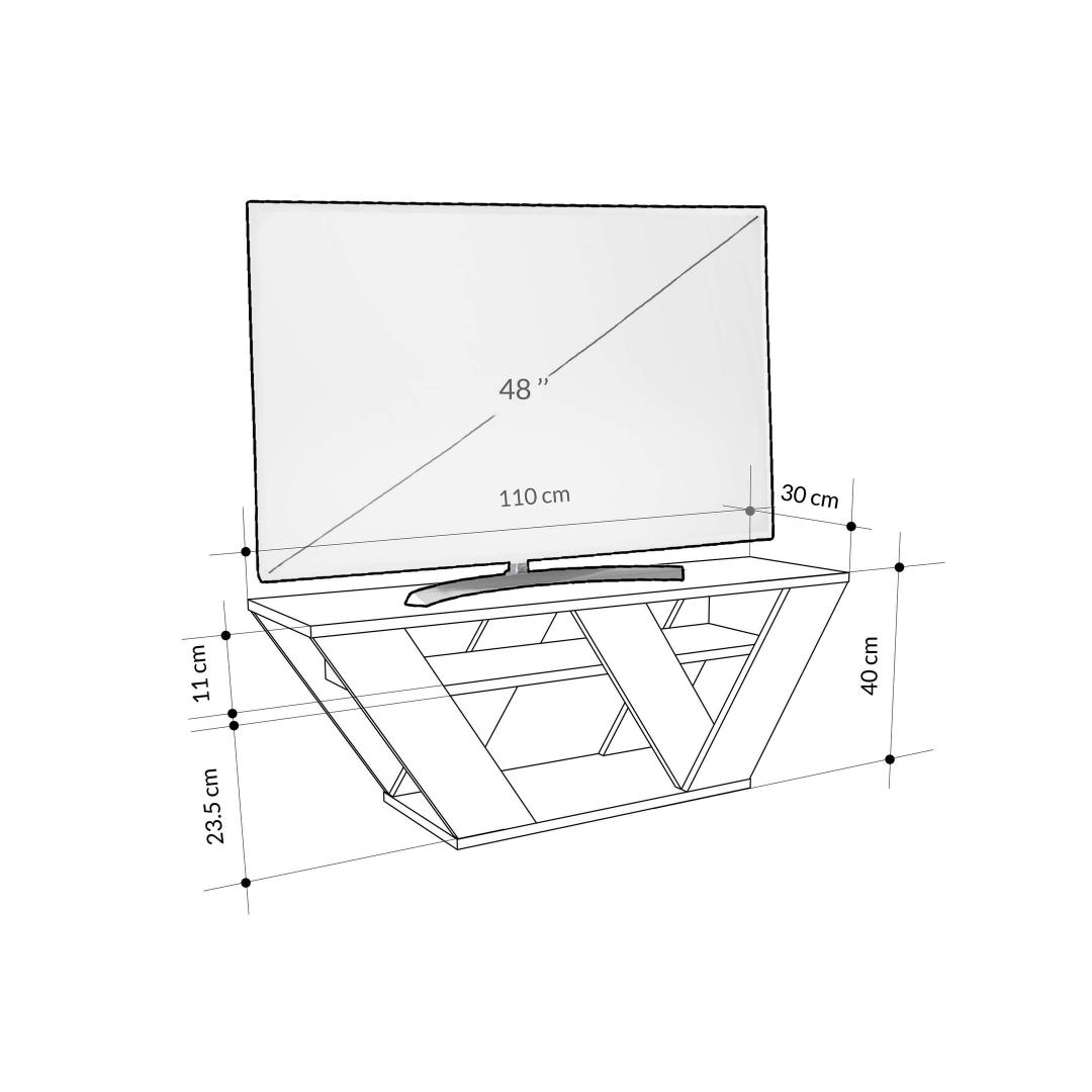 The sleek design of this TV stand is not just visually appealing, but also functional. With a width of 110 cm, height of 40 cm, and depth of 30 cm, it can accommodate TVs of various sizes. The shelf height of 11 cm allows for ample storage space without compromising on style.