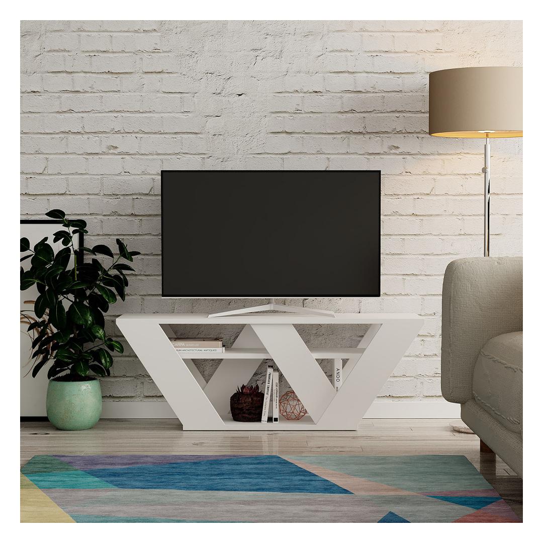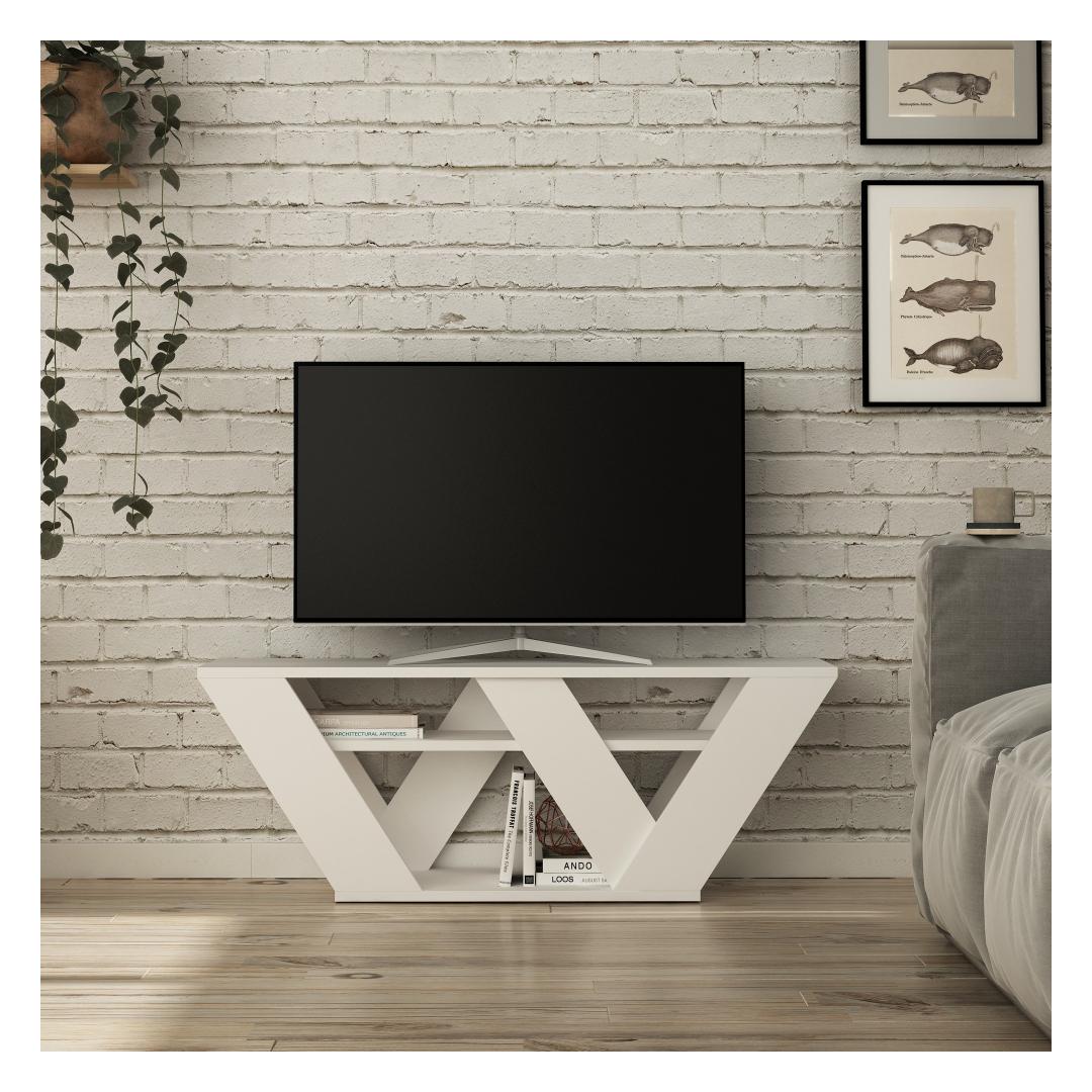 The TV stand features a beautiful white color, adding a touch of elegance to your living space. Its solid color and modern novelty concept make it a perfect addition to any contemporary home.