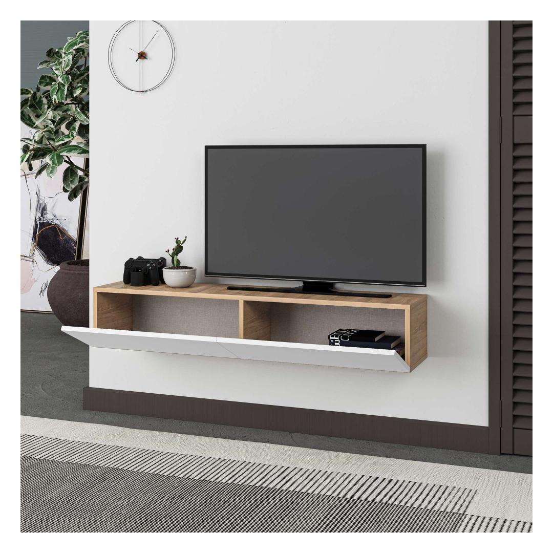 Elevate your living room with our stunning TV stand, crafted with 100% melamine coated particle board for durability and style. The sleek design in Sapphire Oak and White colors will instantly add a touch of elegance to your space, making it the focal point of any room.