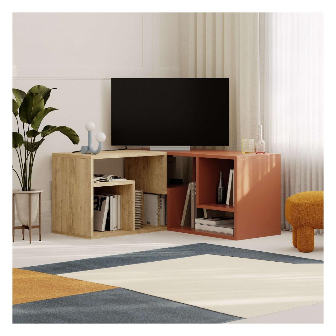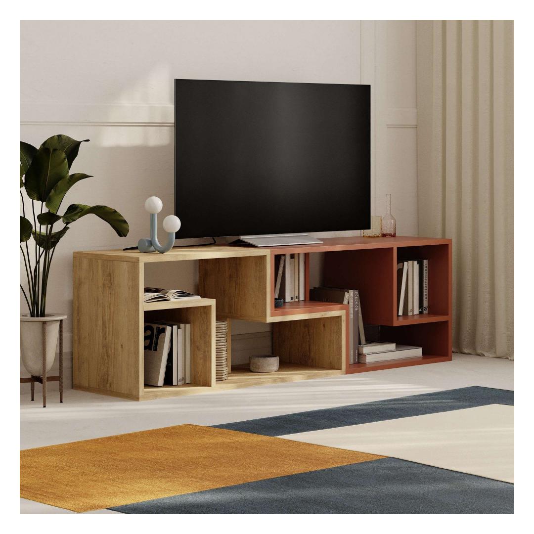 Transform your living room into a stylish and organized space with our stunning TV stand. This elegant piece is crafted from 100% melamine coated particle board, ensuring durability and longevity. The sleek design features a beautiful combination of Sapphire Oak and Cinnamon colors, adding a touch of sophistication to any room.
