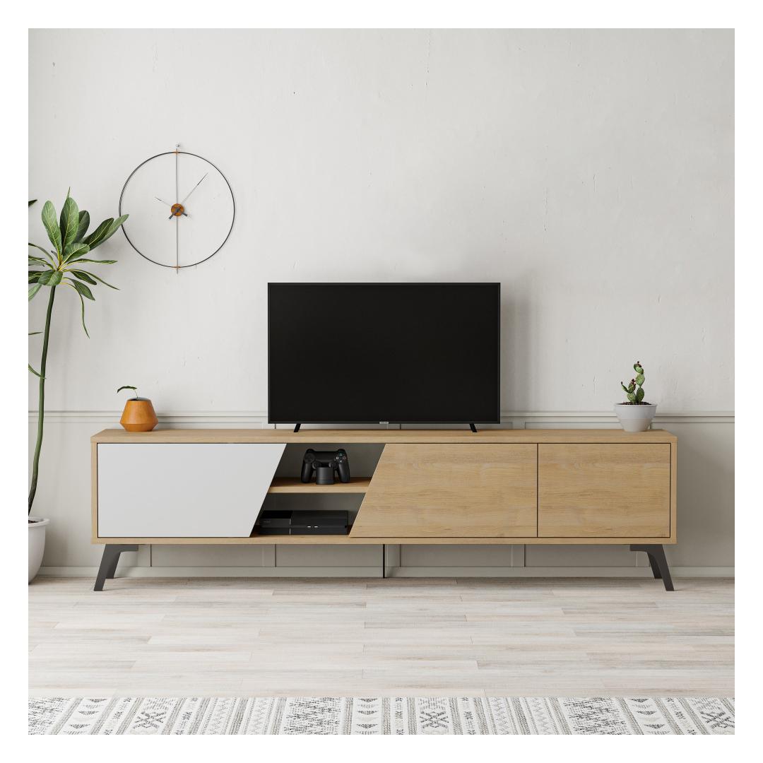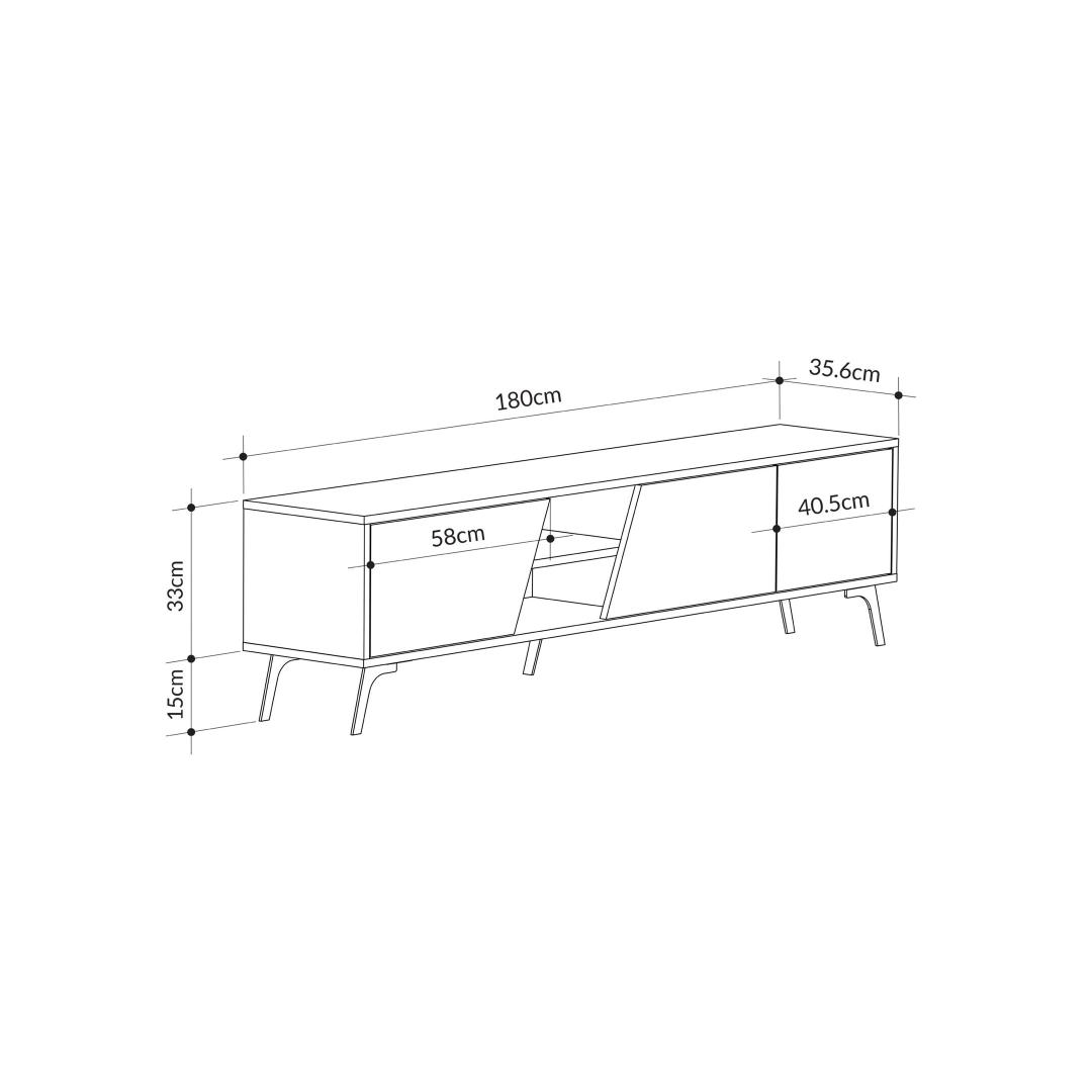 With a width of 180cm, height of 48cm, and depth of 35.6cm, our TV stand is designed to accommodate a wide range of television sizes. Whether you have a compact 32-inch TV or a larger 65-inch screen, this stand will provide the perfect fit, ensuring your TV is displayed at the optimal viewing height.