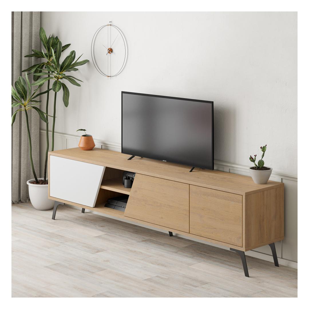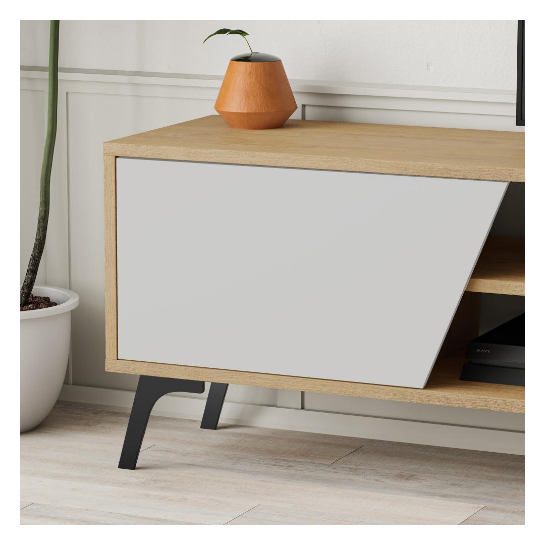 The combination of oak and white colors gives our TV stand a timeless and sophisticated look. The oak finish adds warmth and richness, while the white accents bring a modern touch. This versatile color scheme allows the stand to seamlessly blend with any existing furniture and decor in your home.