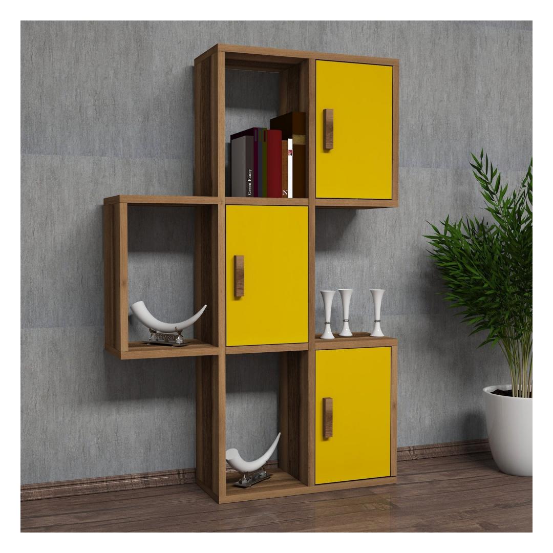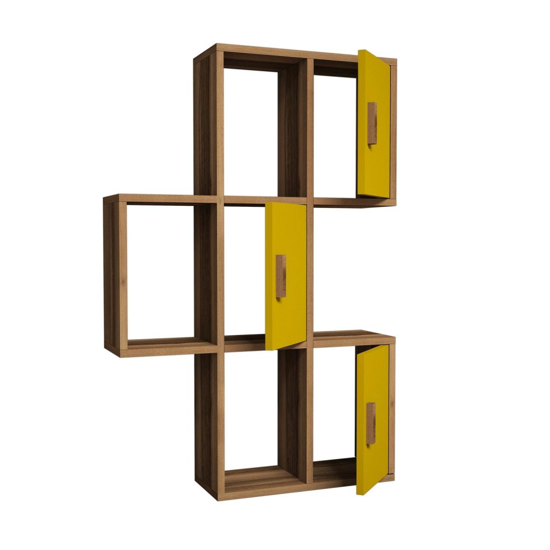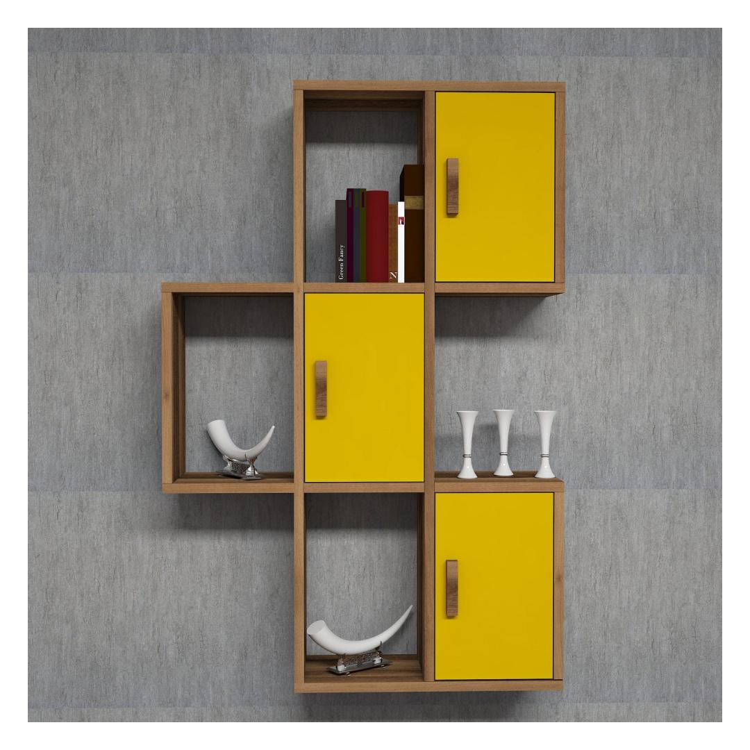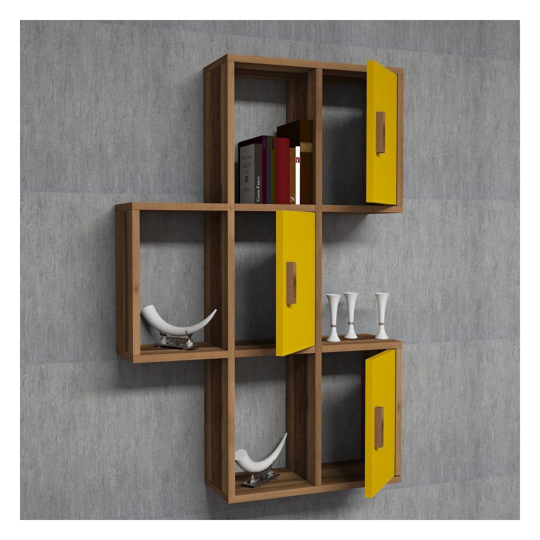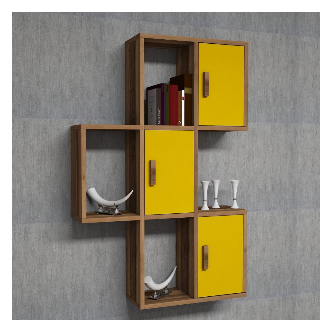Let your imagination run wild as you adorn this shelf with your favorite books, plants, and trinkets, creating a mesmerizing display that reflects your eclectic taste and artistic flair. The combination of walnut and yellow colors adds a warm and inviting ambiance to any room, making it the perfect addition to your living room, bedroom, or even your office.