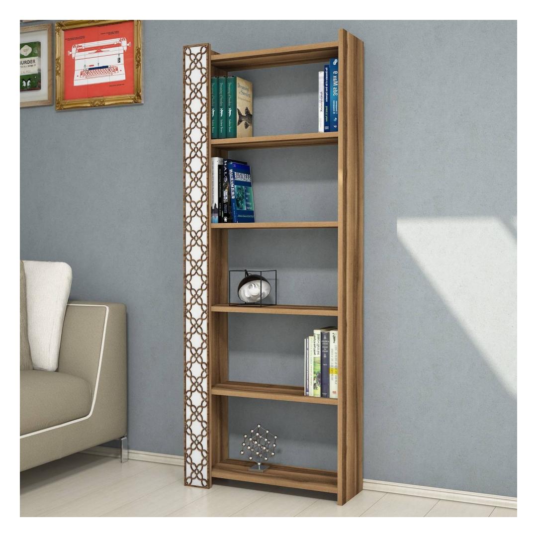 With its modern and novelty design, this bookshelf seamlessly blends American traditional charm with a touch of floral elegance. The combination of Walnut and White colors adds a sophisticated touch to any decor, making it a versatile piece that can complement any style.