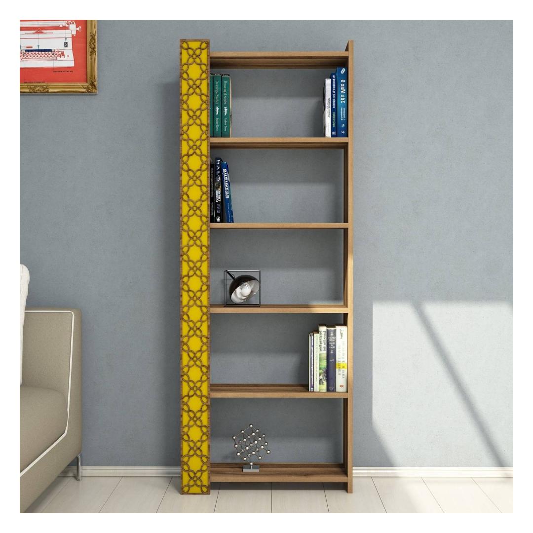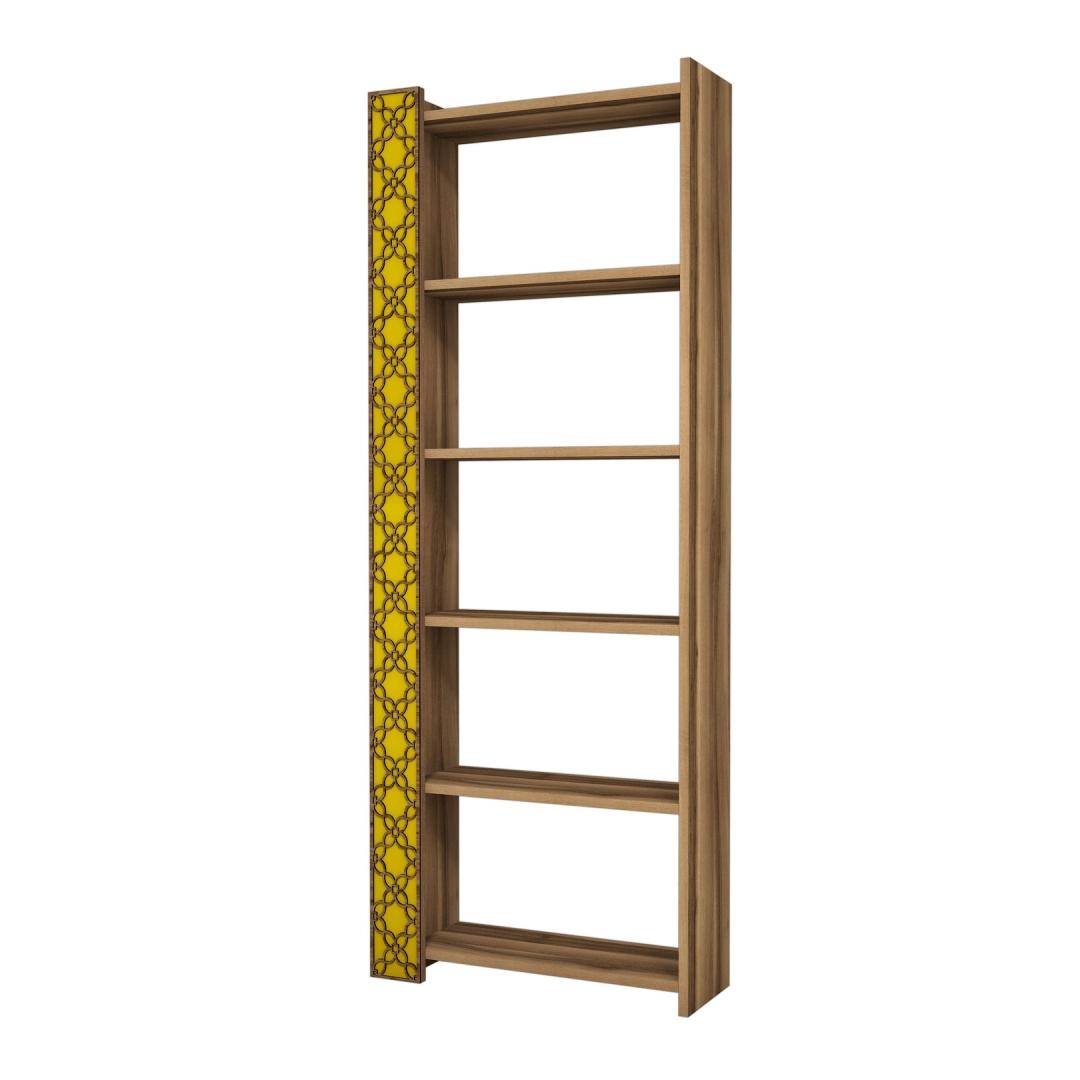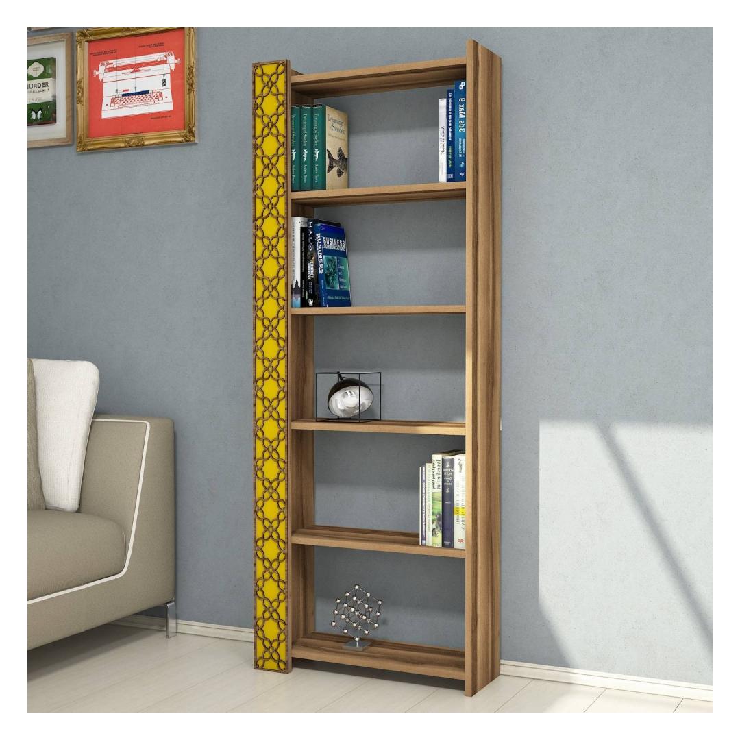 Not only is this bookshelf visually captivating, but it also adds a touch of American traditional charm to your space. Its warm walnut and yellow colors create a cozy and inviting atmosphere, making it the perfect addition to any home. Say goodbye to boring shelves and hello to a statement piece that will impress your guests.